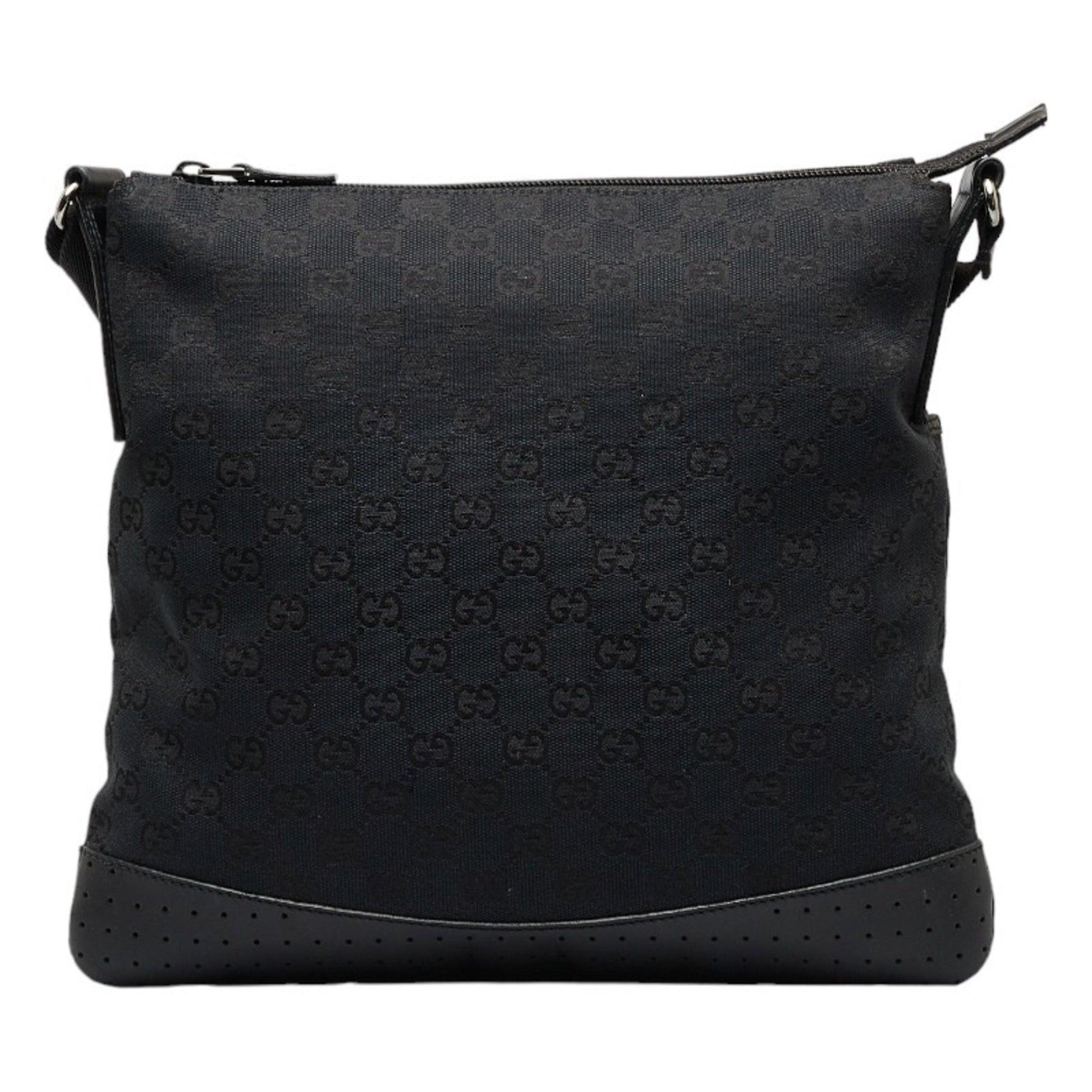 GUCCI GG Canvas Shoulder Bag 145857 Black Leather Women's