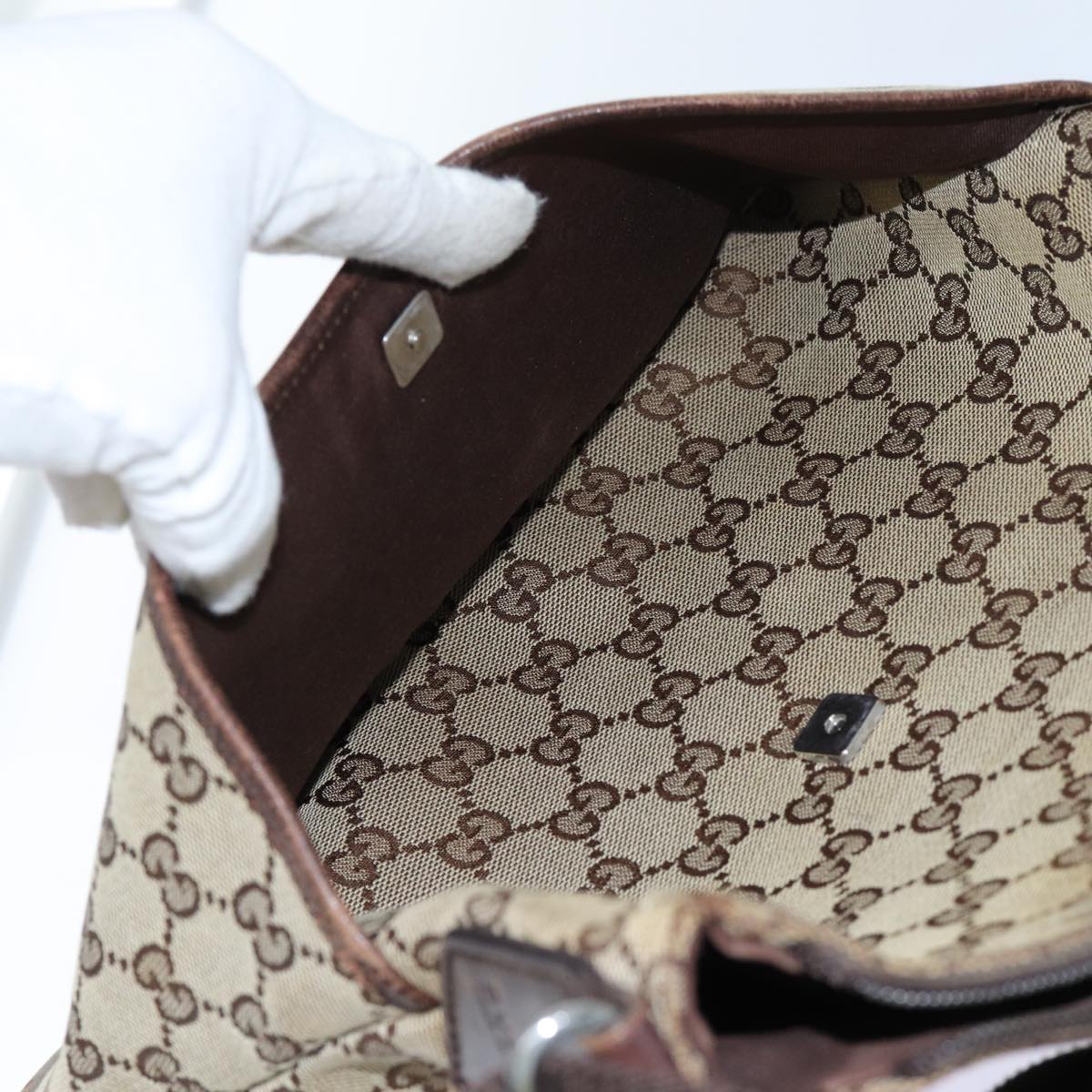 GUCCI GG Canvas Shoulder Bag Beige Auth 71027
