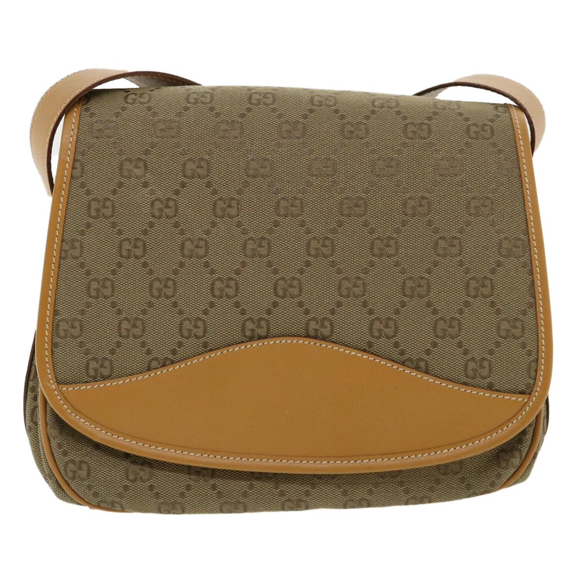 GUCCI GG Canvas Shoulder Bag Beige Brown Auth yk5899