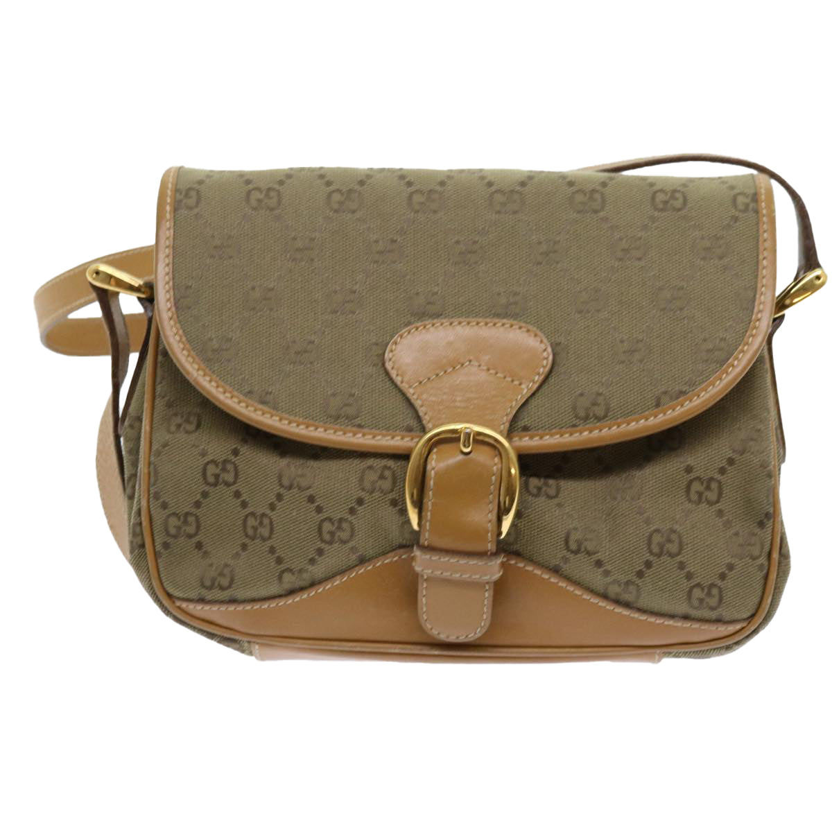 GUCCI GG Canvas Shoulder Bag Khaki 007 2854 0246 Auth 63803