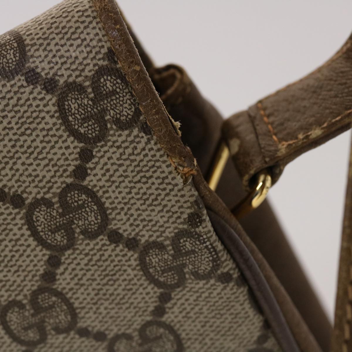 GUCCI GG Canvas Shoulder Bag PVC Leather Beige 48599