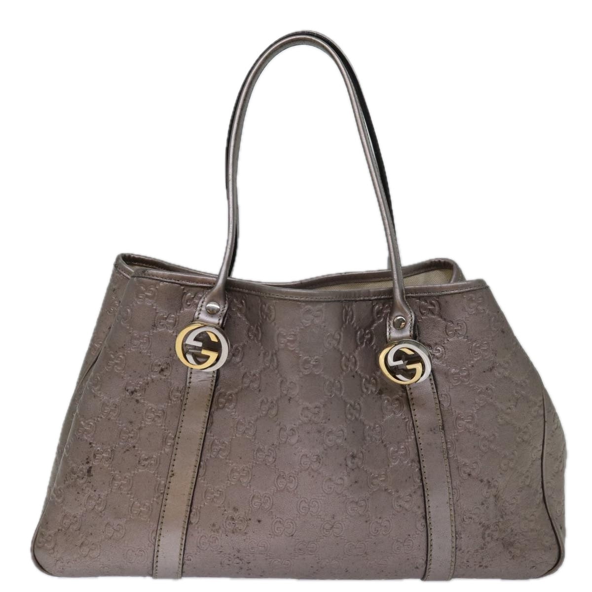 GUCCI GG Canvas ssima GG Twins Tote Bag Silver Tone 232957 Auth bs13179