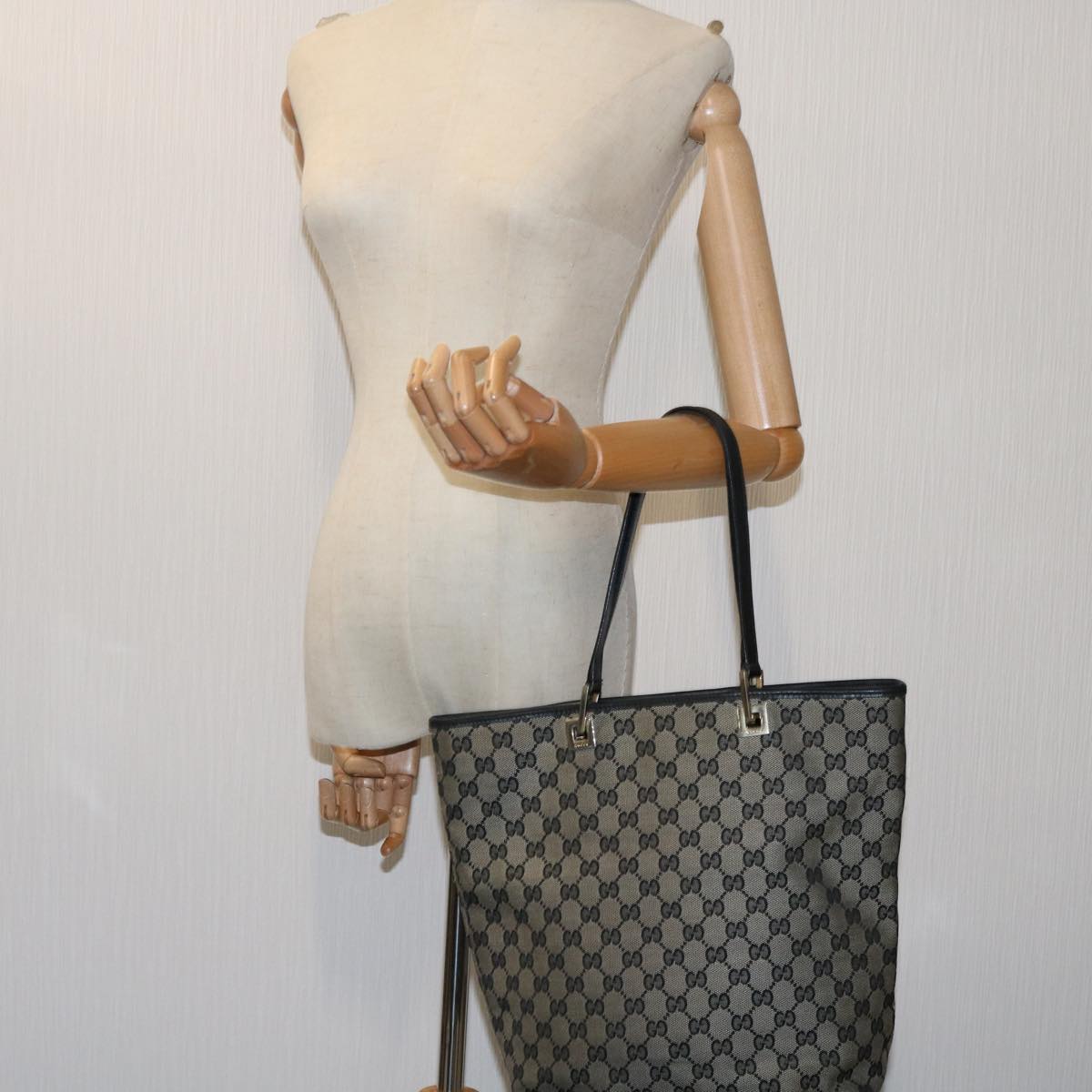 GUCCI GG Canvas Tote Bag Beige Black 001 1098 Auth 69051