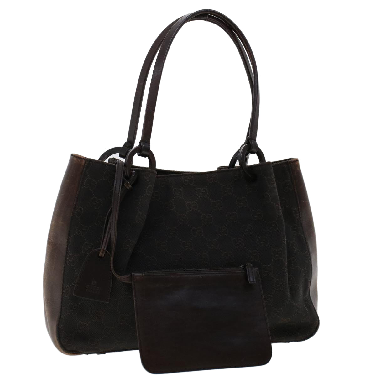GUCCI GG Canvas Tote Bag Canvas Leather Dark Brown fm2491