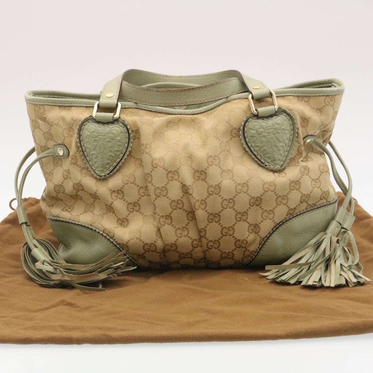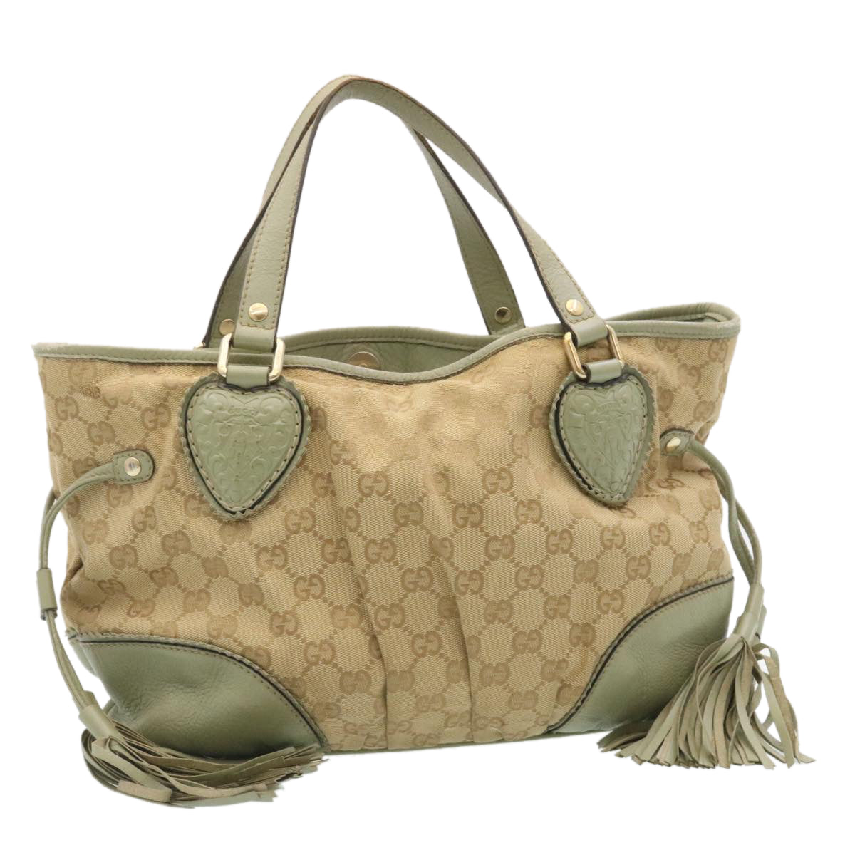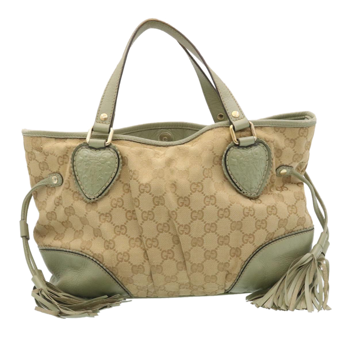 GUCCI GG Canvas Tote Bag Fringe Beige Green yk3822