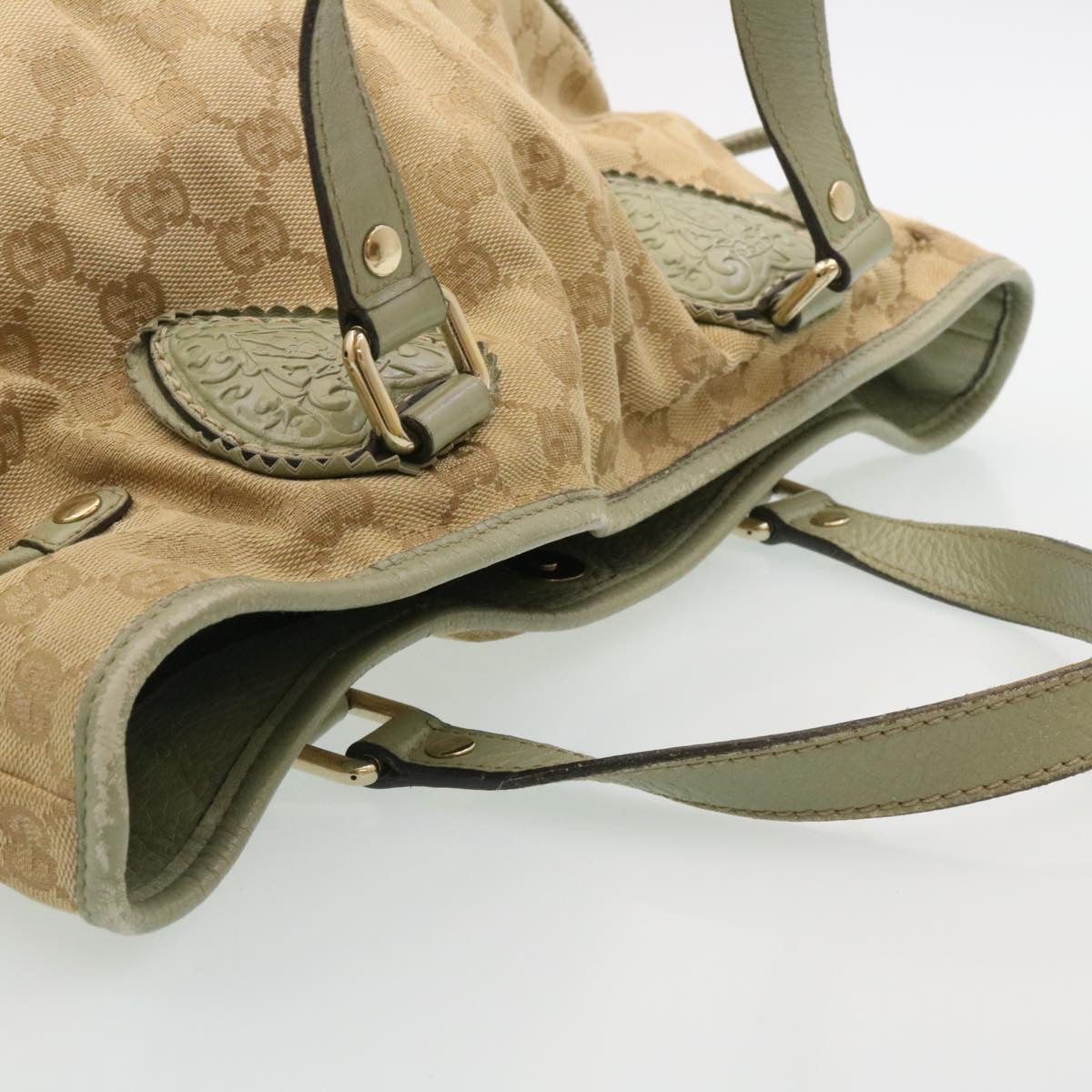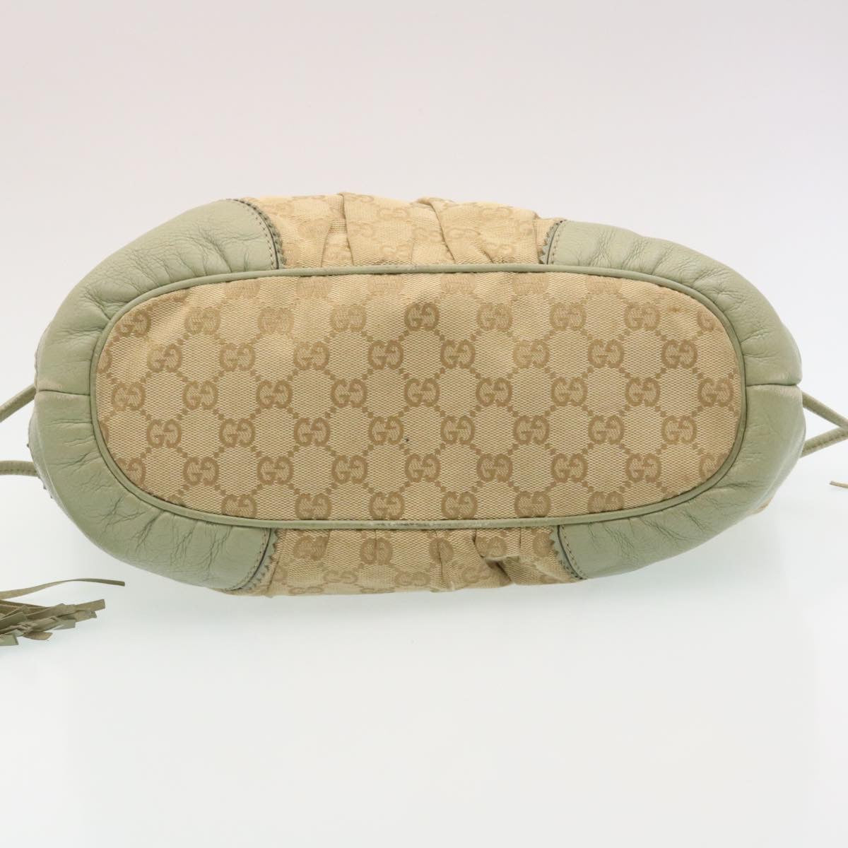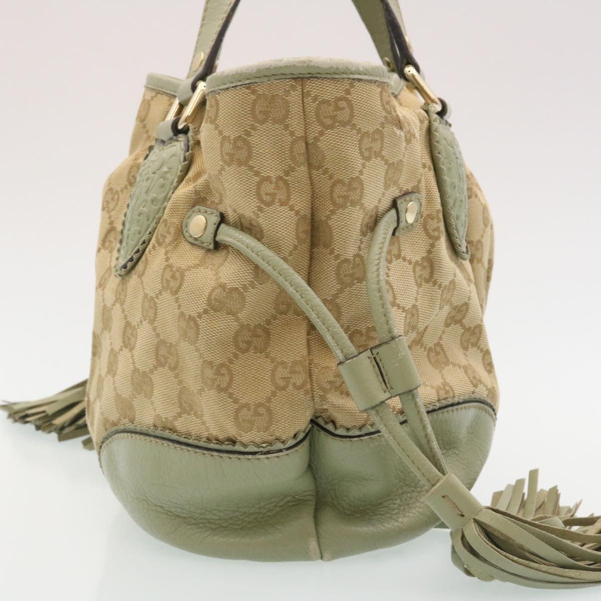 GUCCI GG Canvas Tote Bag Fringe Beige Green yk3822