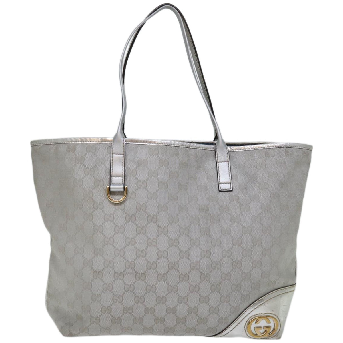 GUCCI GG Canvas Tote Bag Silver 169945 Auth 66727