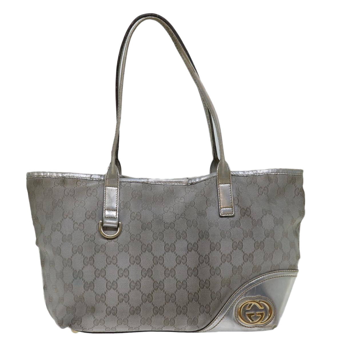GUCCI GG Canvas Tote Bag Silver 169946 Auth 69643