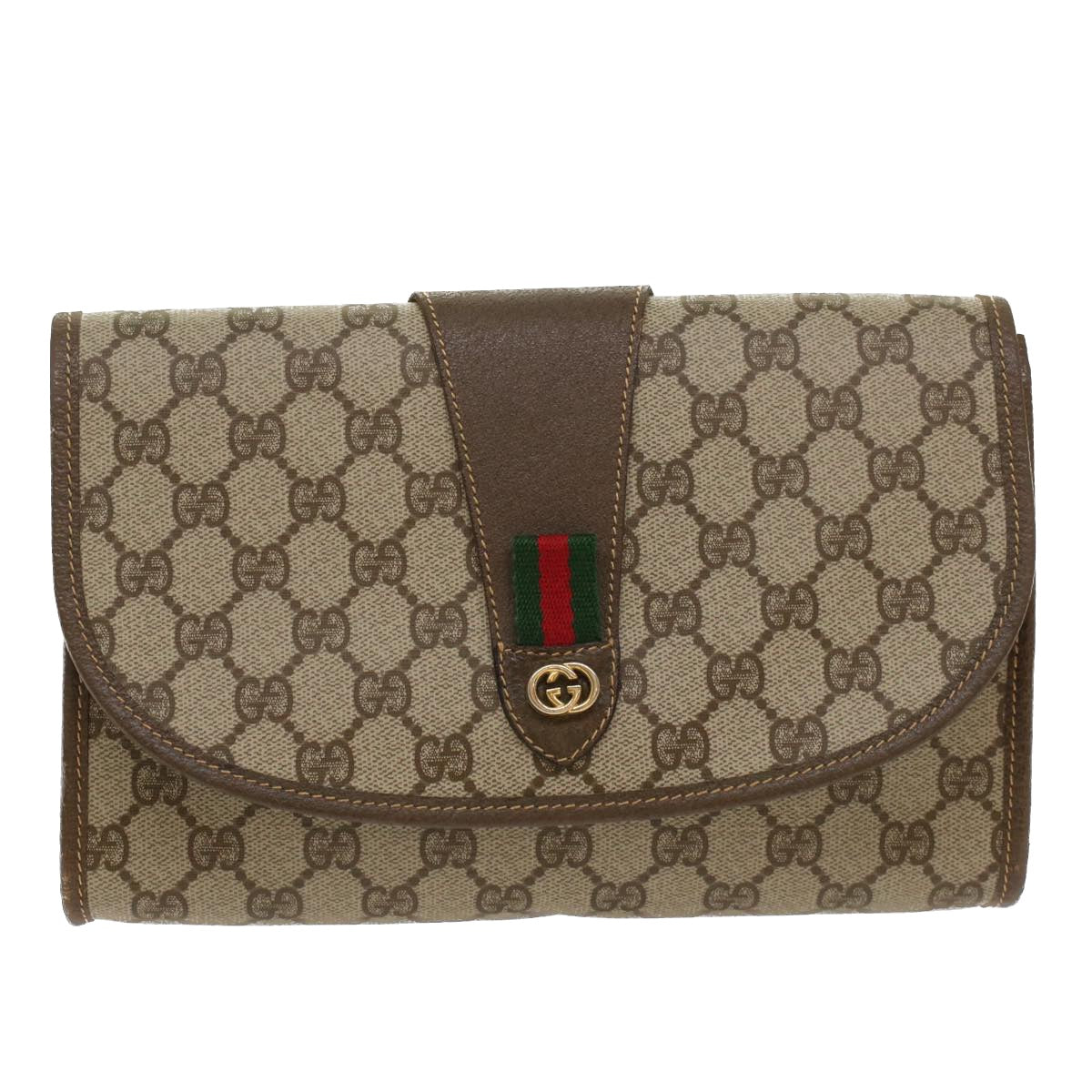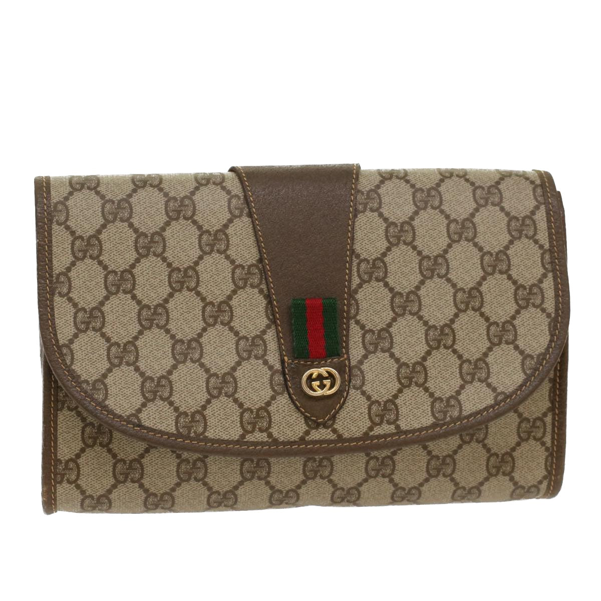 GUCCI GG Canvas Web Sherry Line Clutch Bag Beige Red Green 14.01.030 ep1124