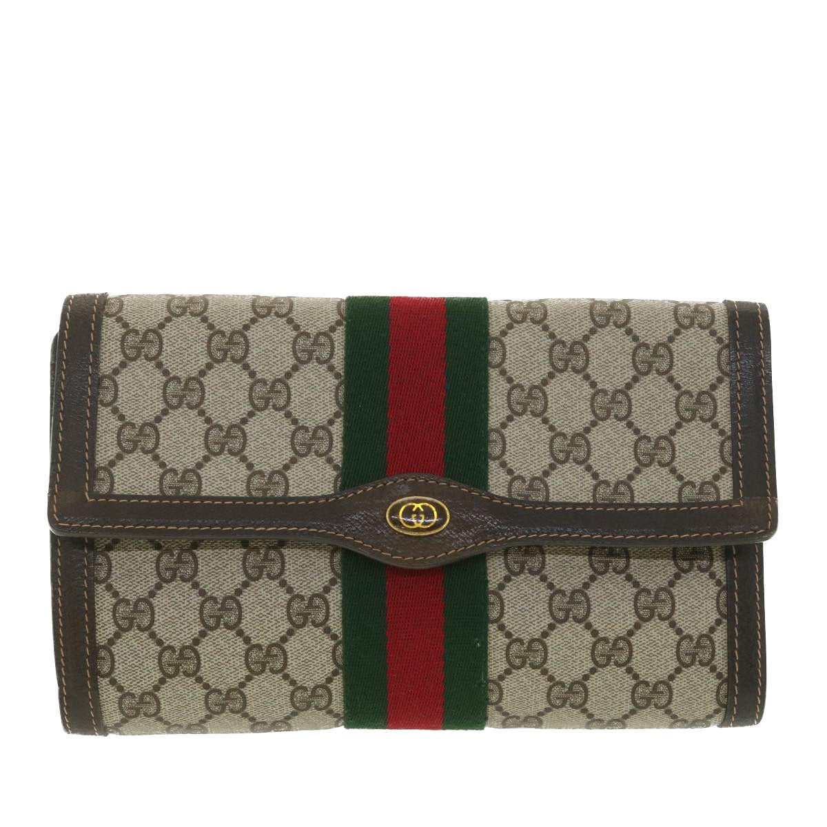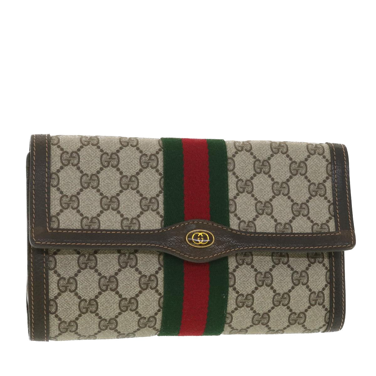 GUCCI GG Canvas Web Sherry Line Clutch Bag Beige Red Green 41.014 yk6142B