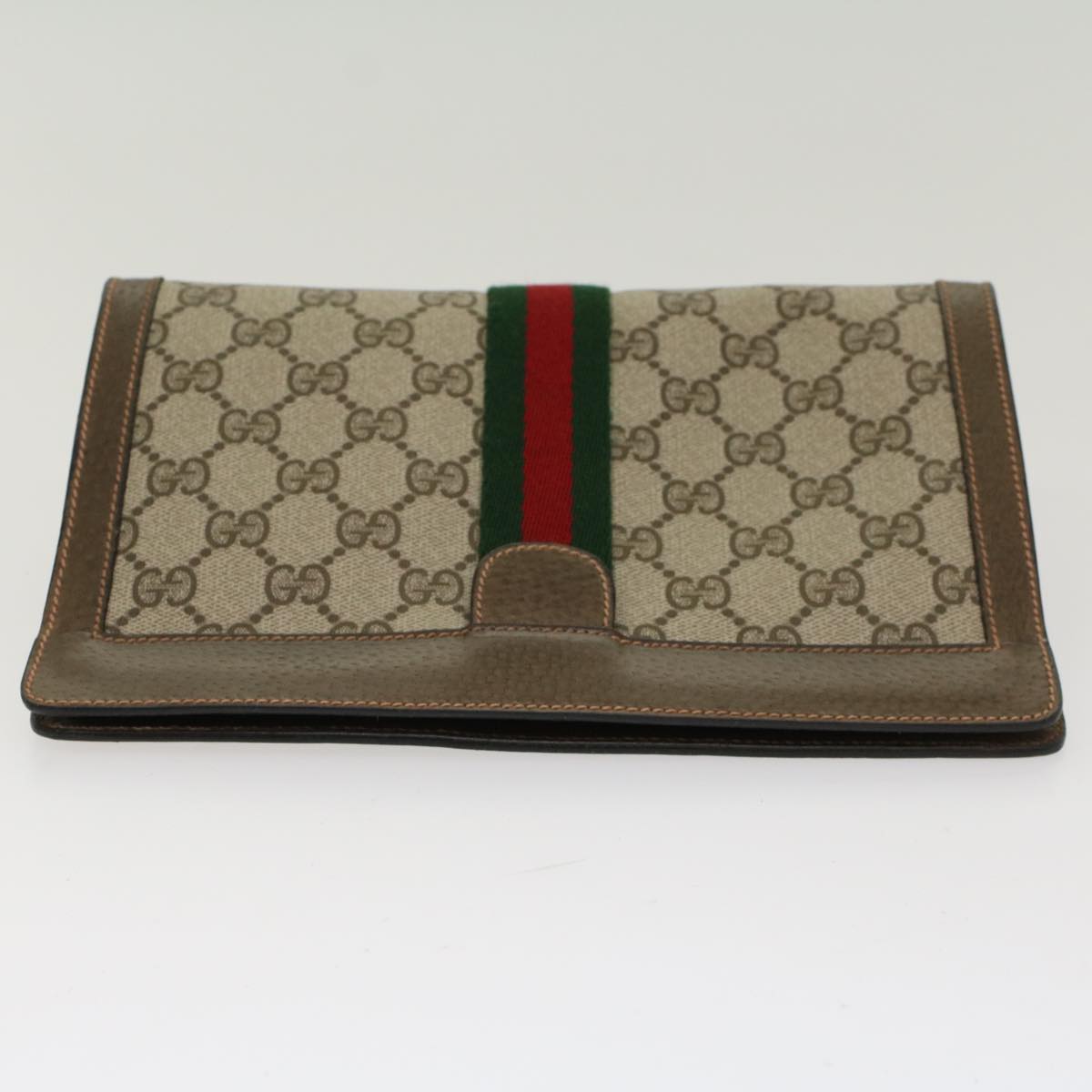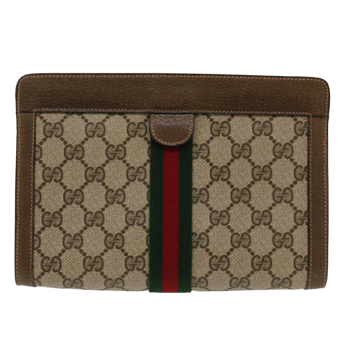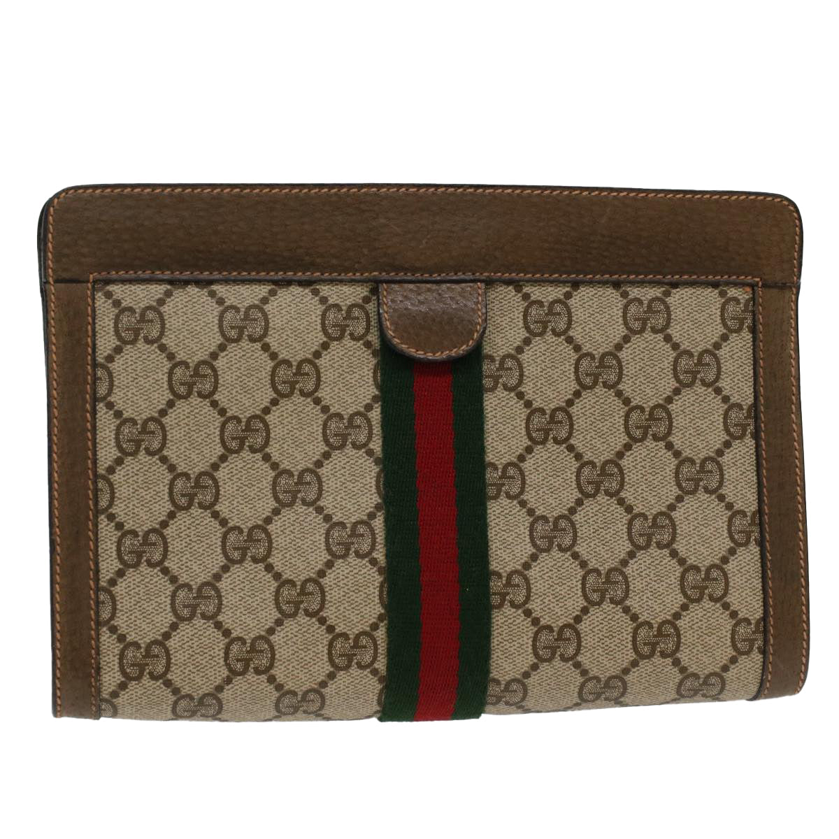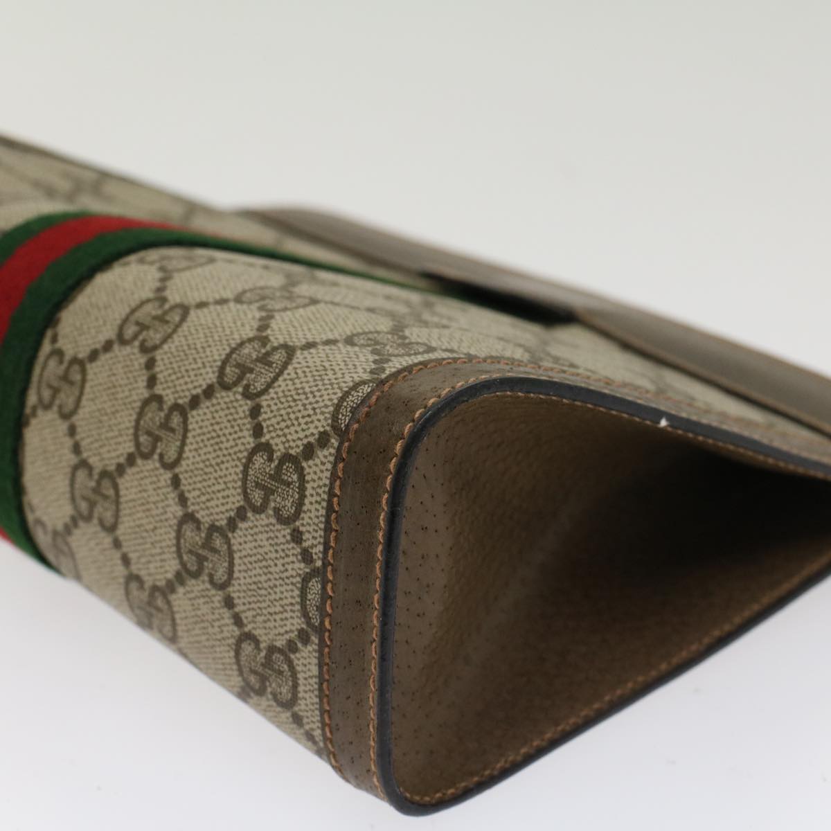 GUCCI GG Canvas Web Sherry Line Clutch Bag Beige Red Green 89.01.001 48199