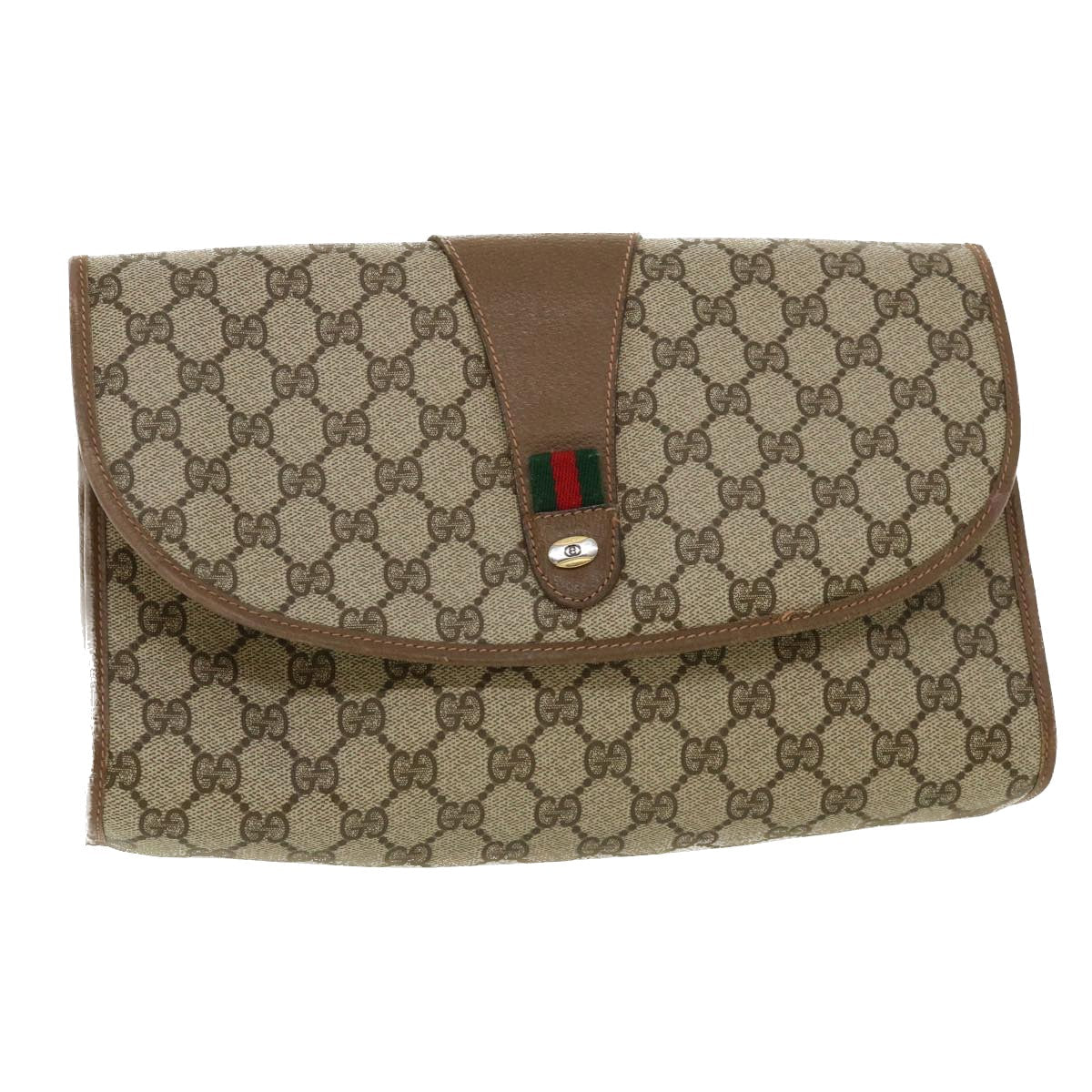 GUCCI GG Canvas Web Sherry Line Clutch Bag Beige Red Green 8901031 ny173