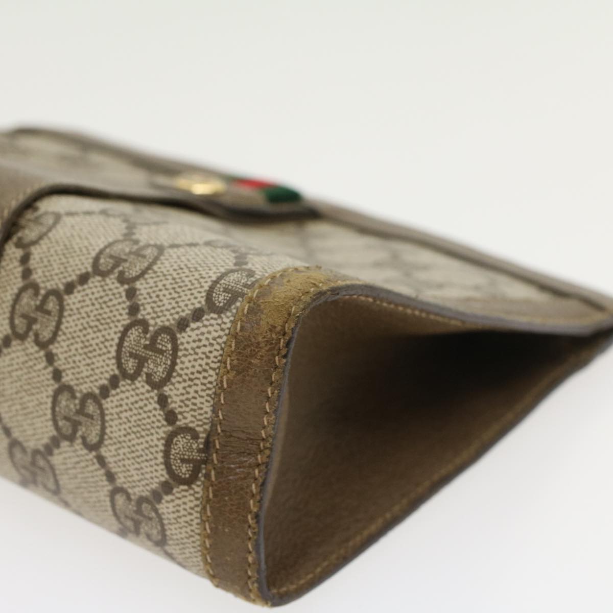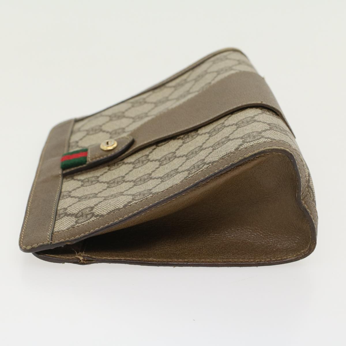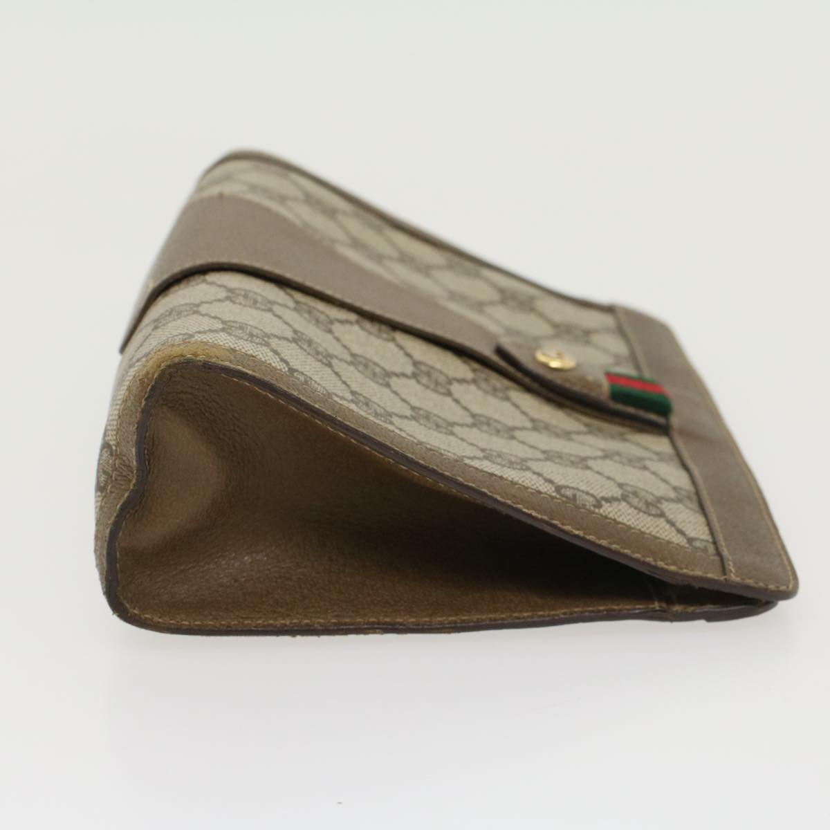 GUCCI GG Canvas Web Sherry Line Clutch Bag PVC Leather Beige Red 43908