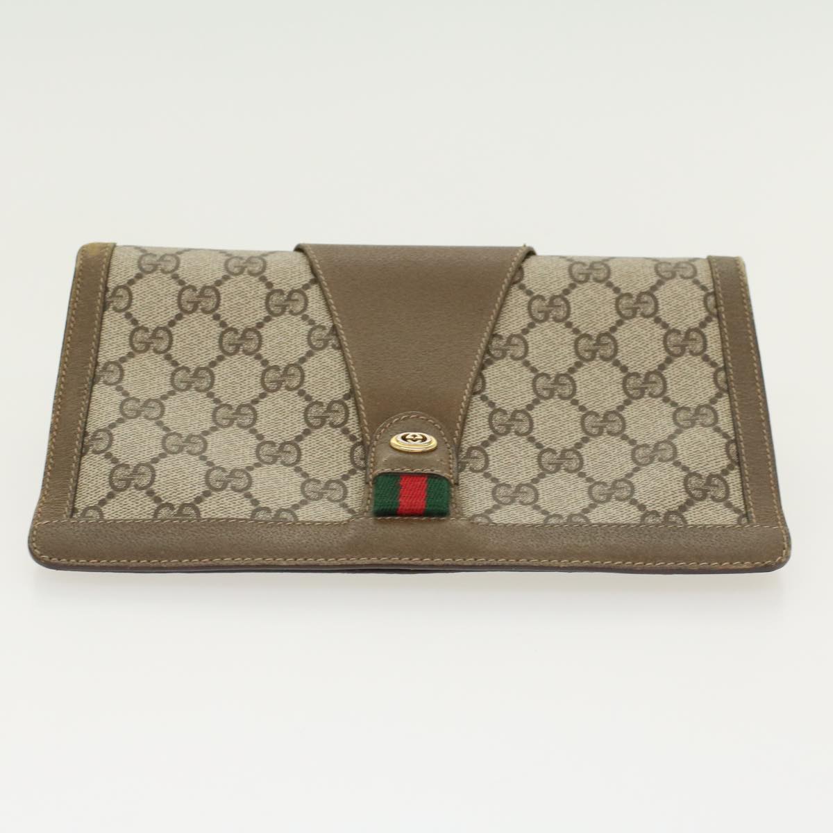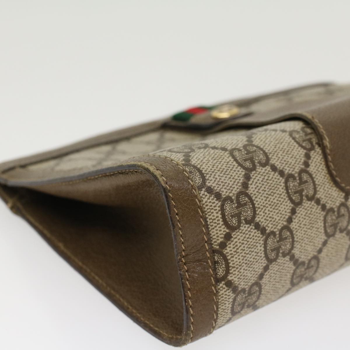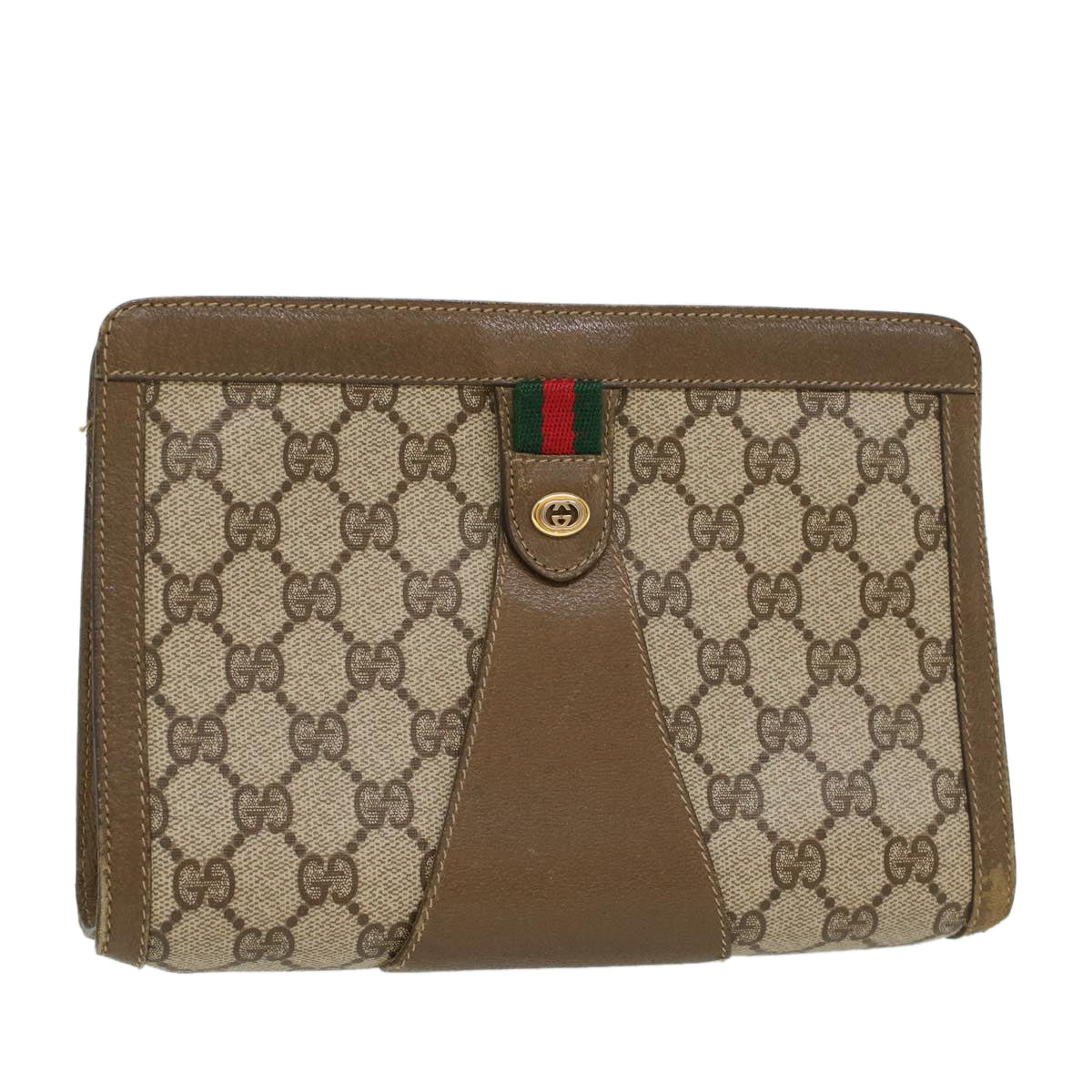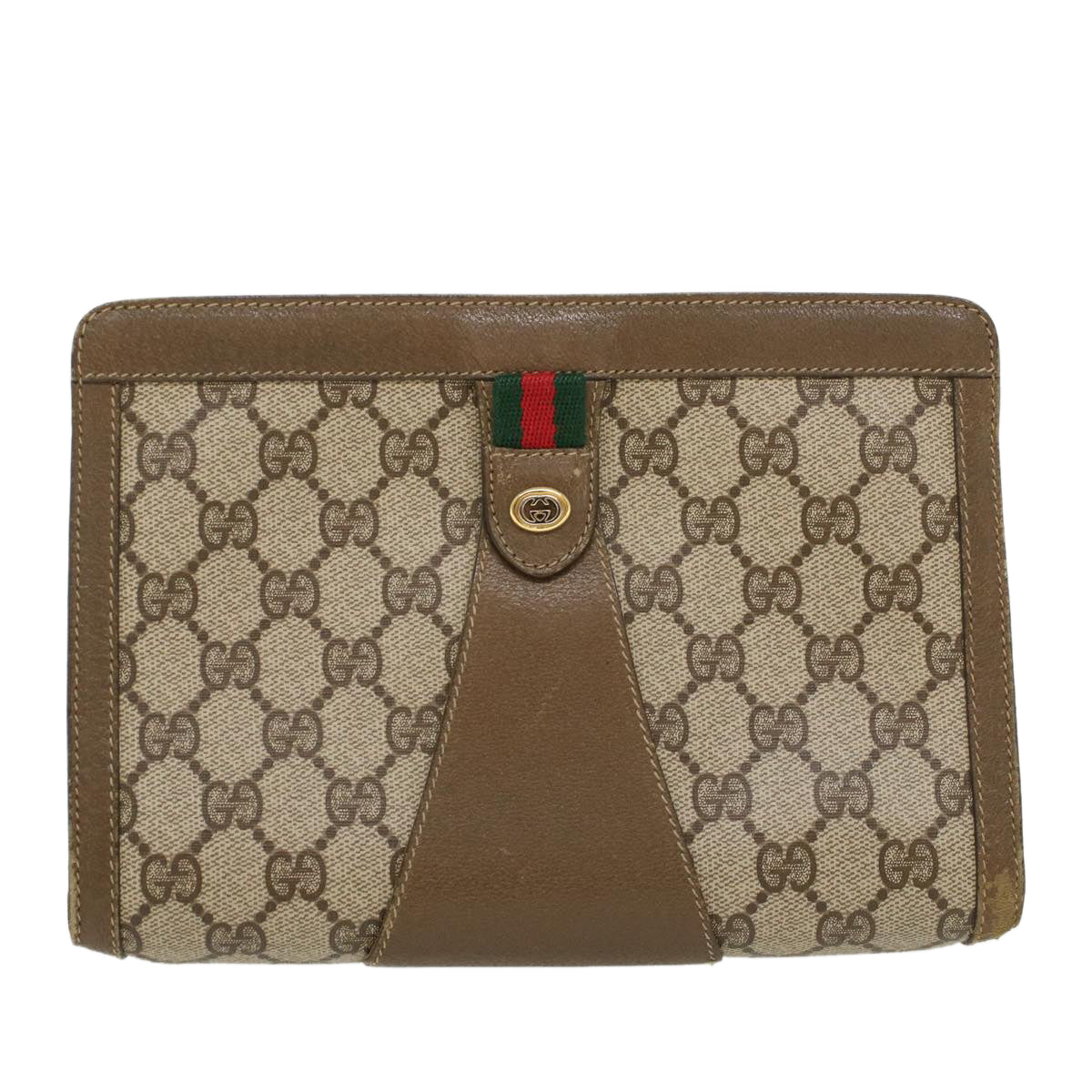 GUCCI GG Canvas Web Sherry Line Clutch Bag PVC Leather Beige Red 43908