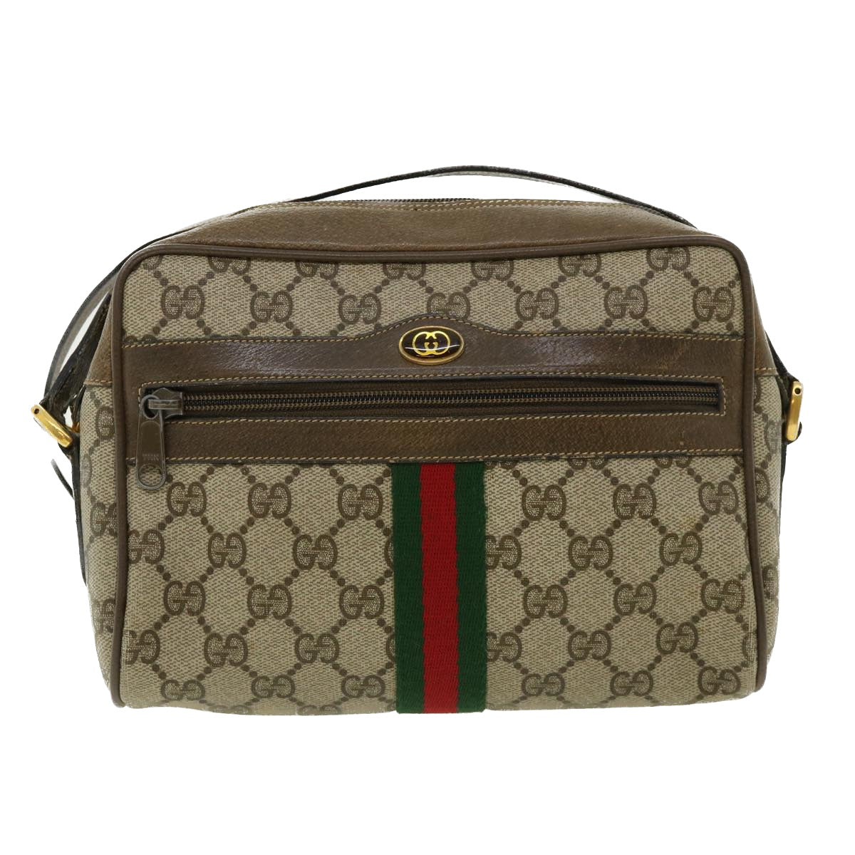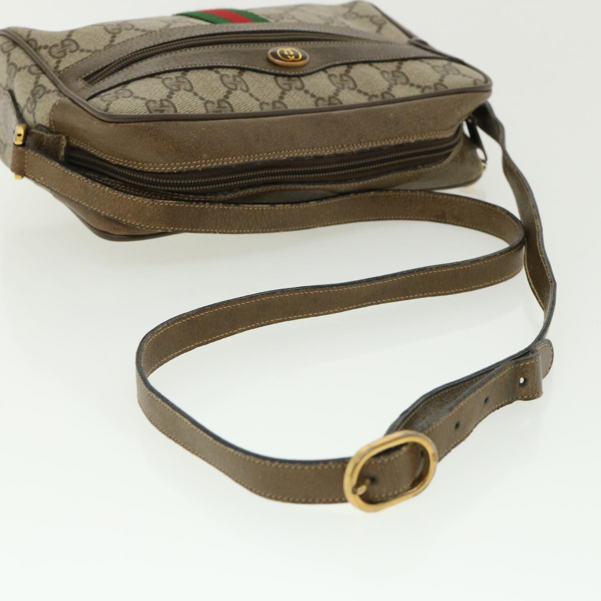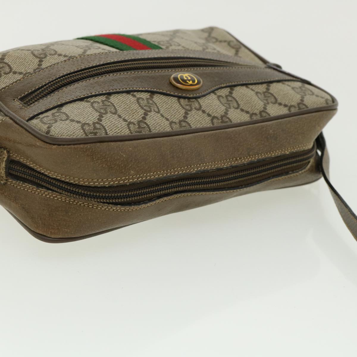 GUCCI GG Canvas Web Sherry Line Shoulder Bag Beige Green 98.02.004 yk5881B