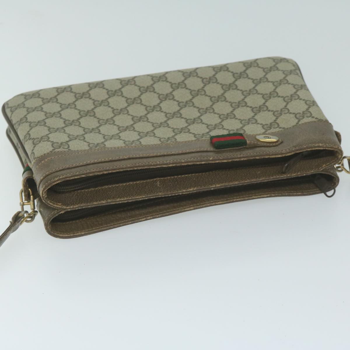 GUCCI GG Canvas Web Sherry Line Shoulder Bag Beige Red 904 02 035 Auth yk10349