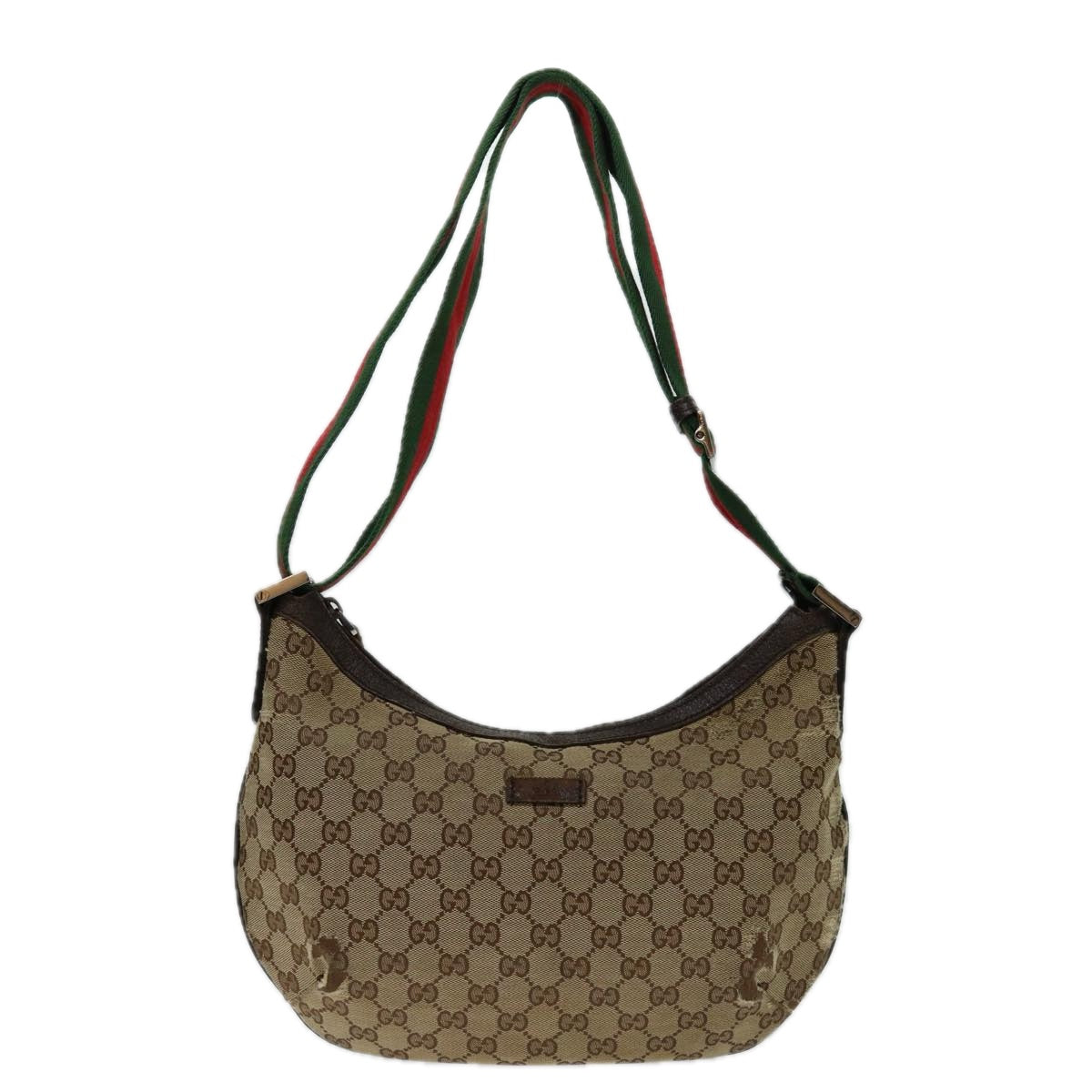 GUCCI GG Canvas Web Sherry Line Shoulder Bag Beige Red Green 181092 Auth 69646