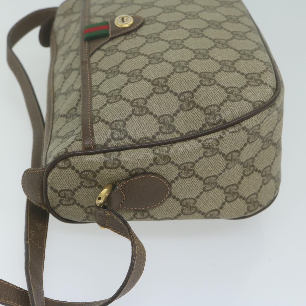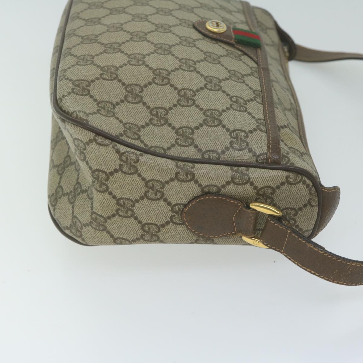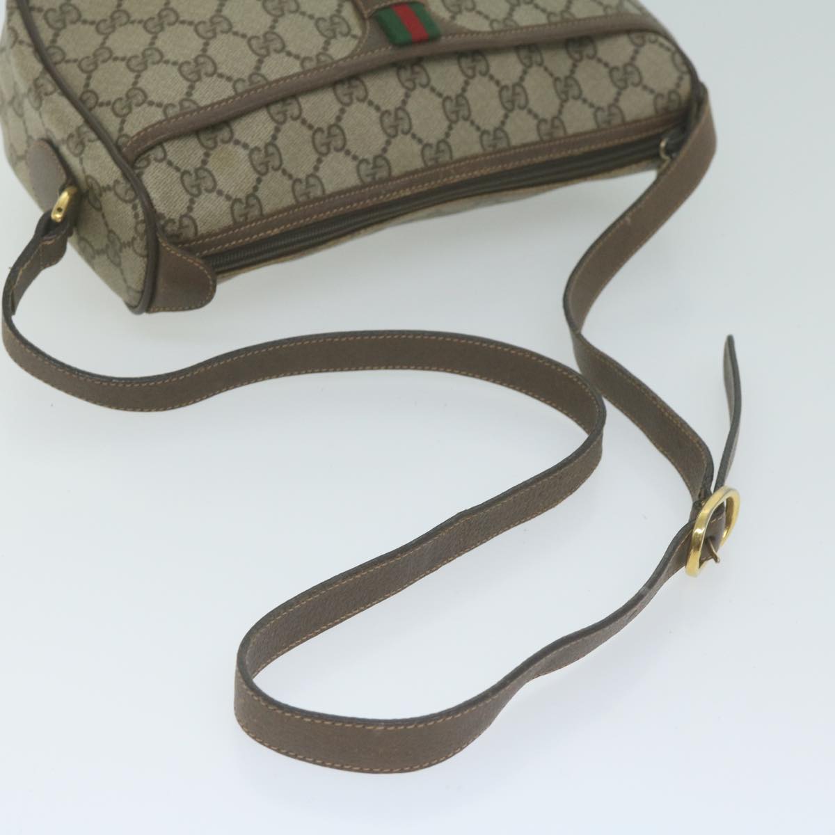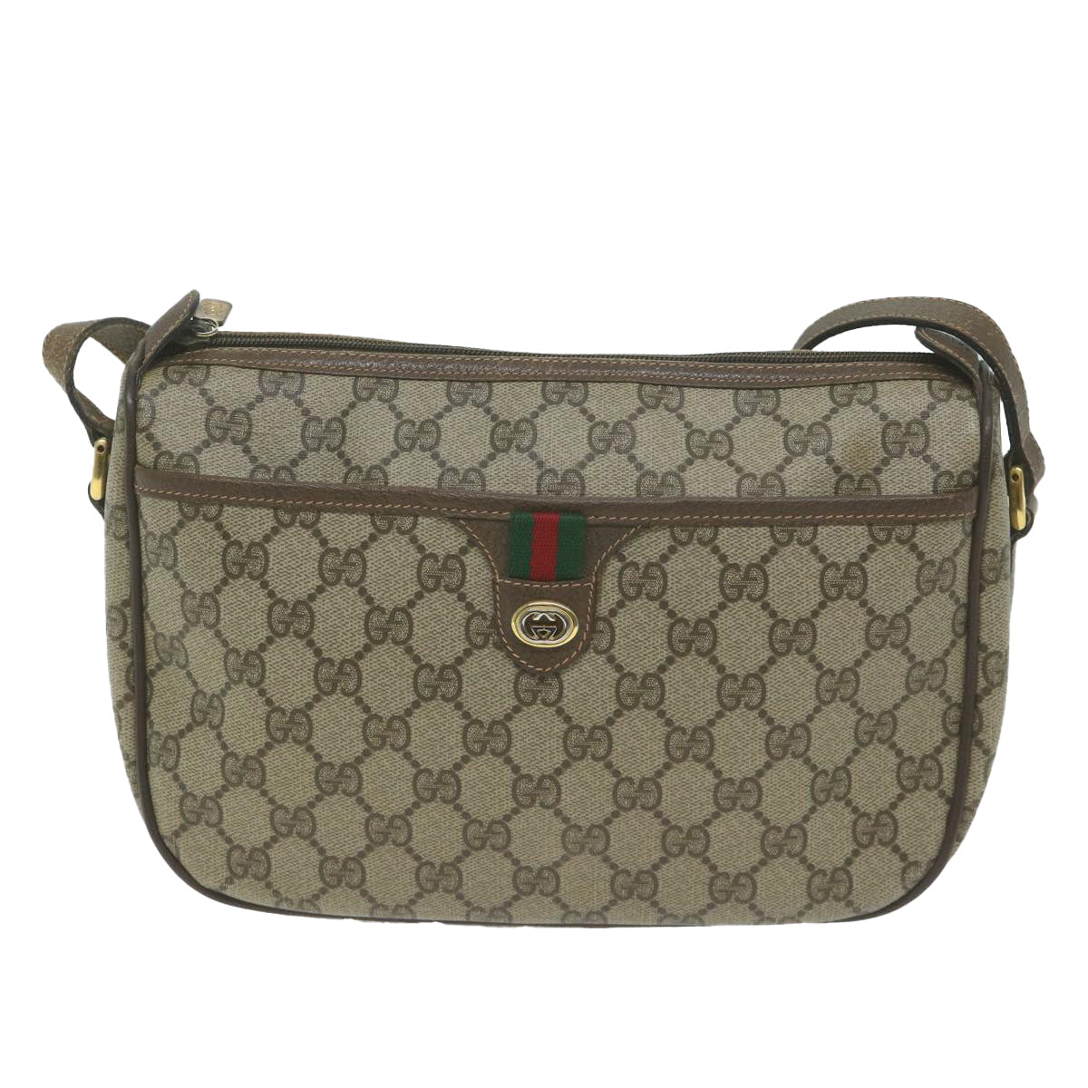 GUCCI GG Canvas Web Sherry Line Shoulder Bag PVC Beige Green Red Auth yk10468
