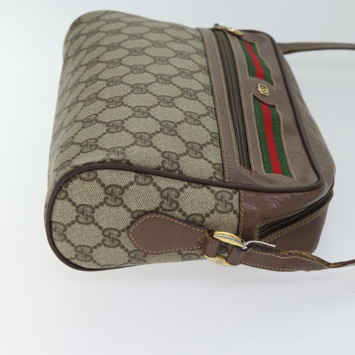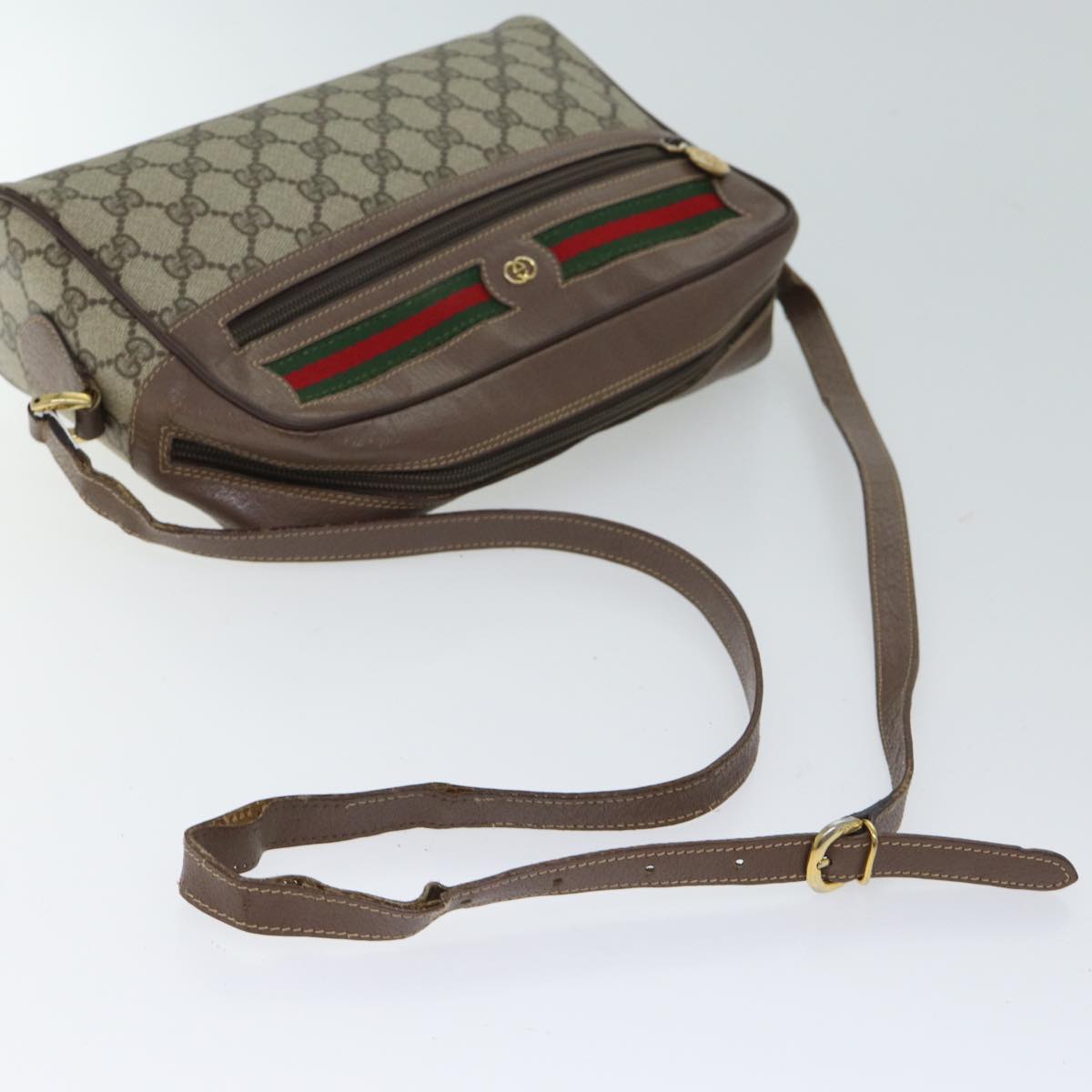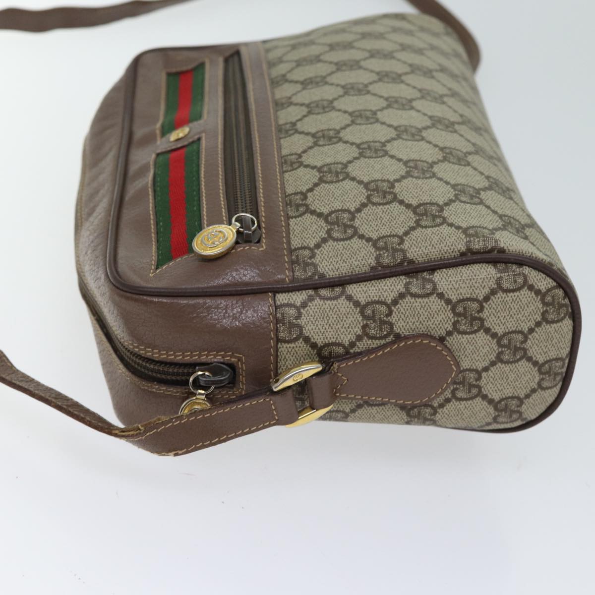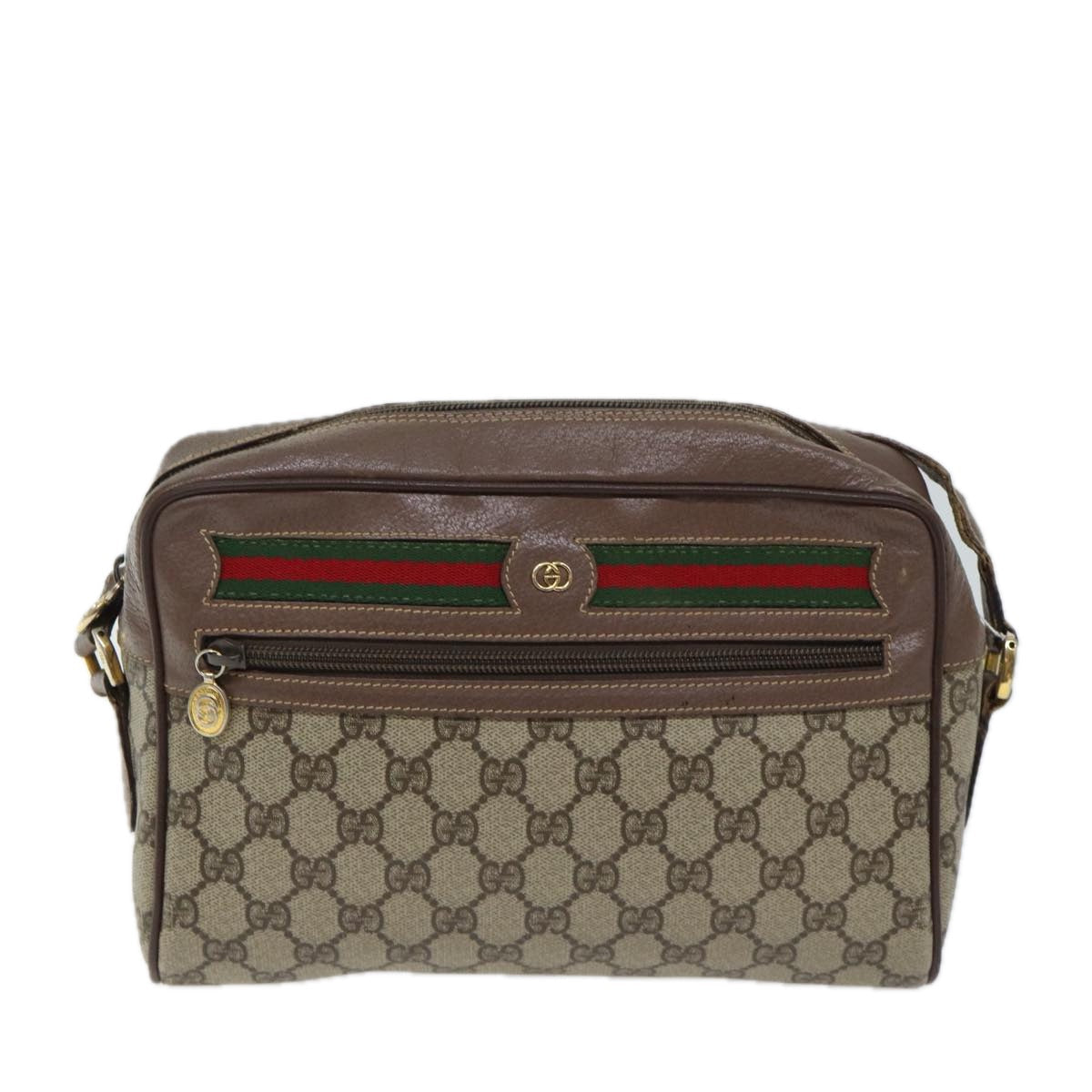 GUCCI GG Canvas Web Sherry Line Shoulder Bag PVC Beige Green Red Auth yk11769