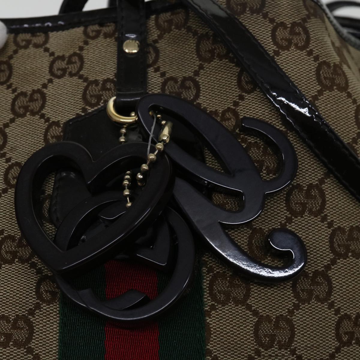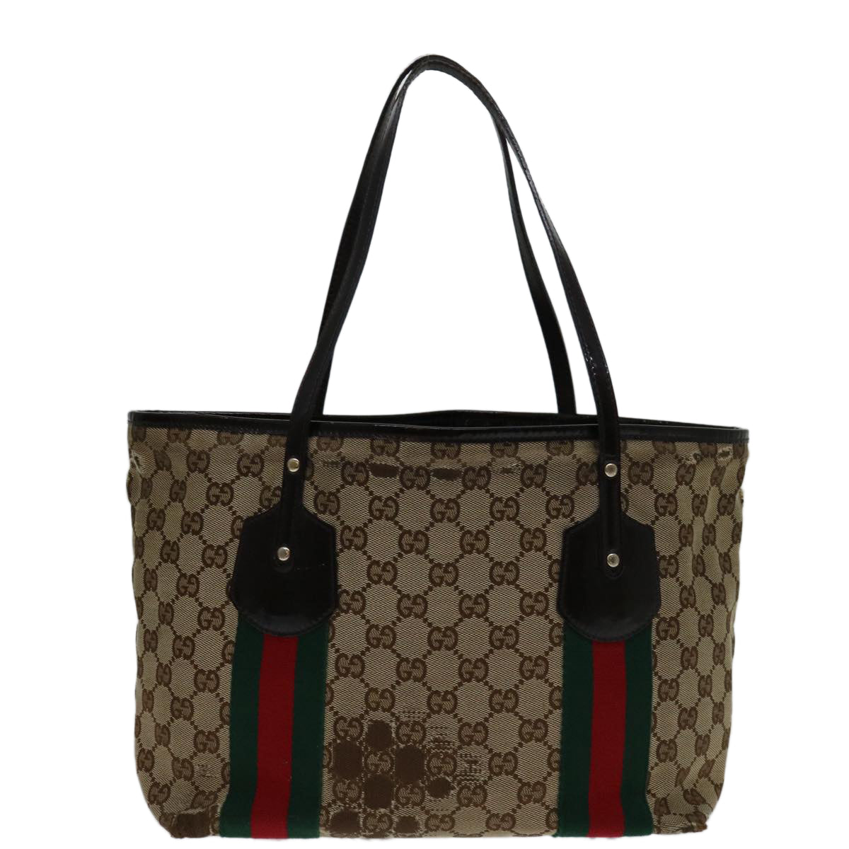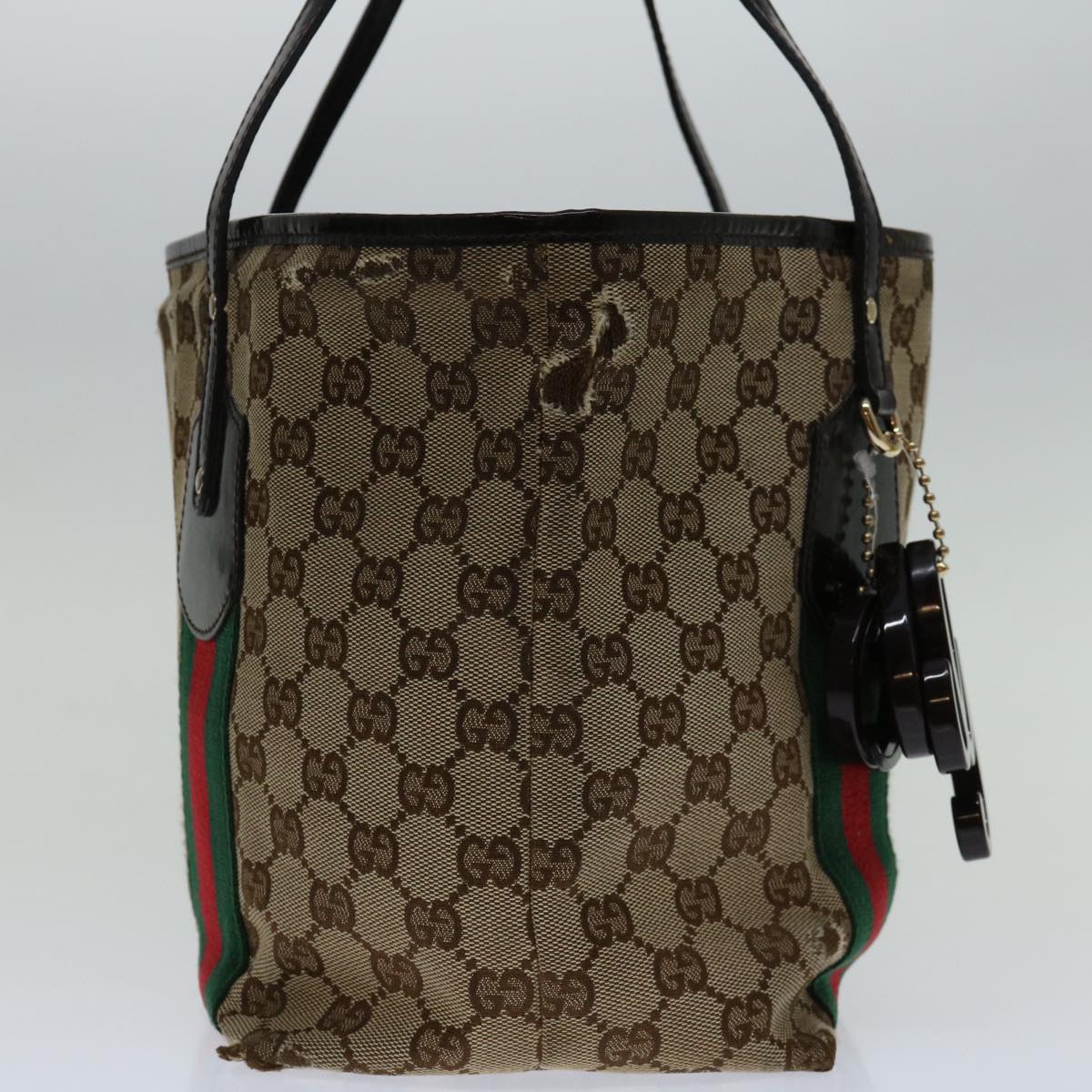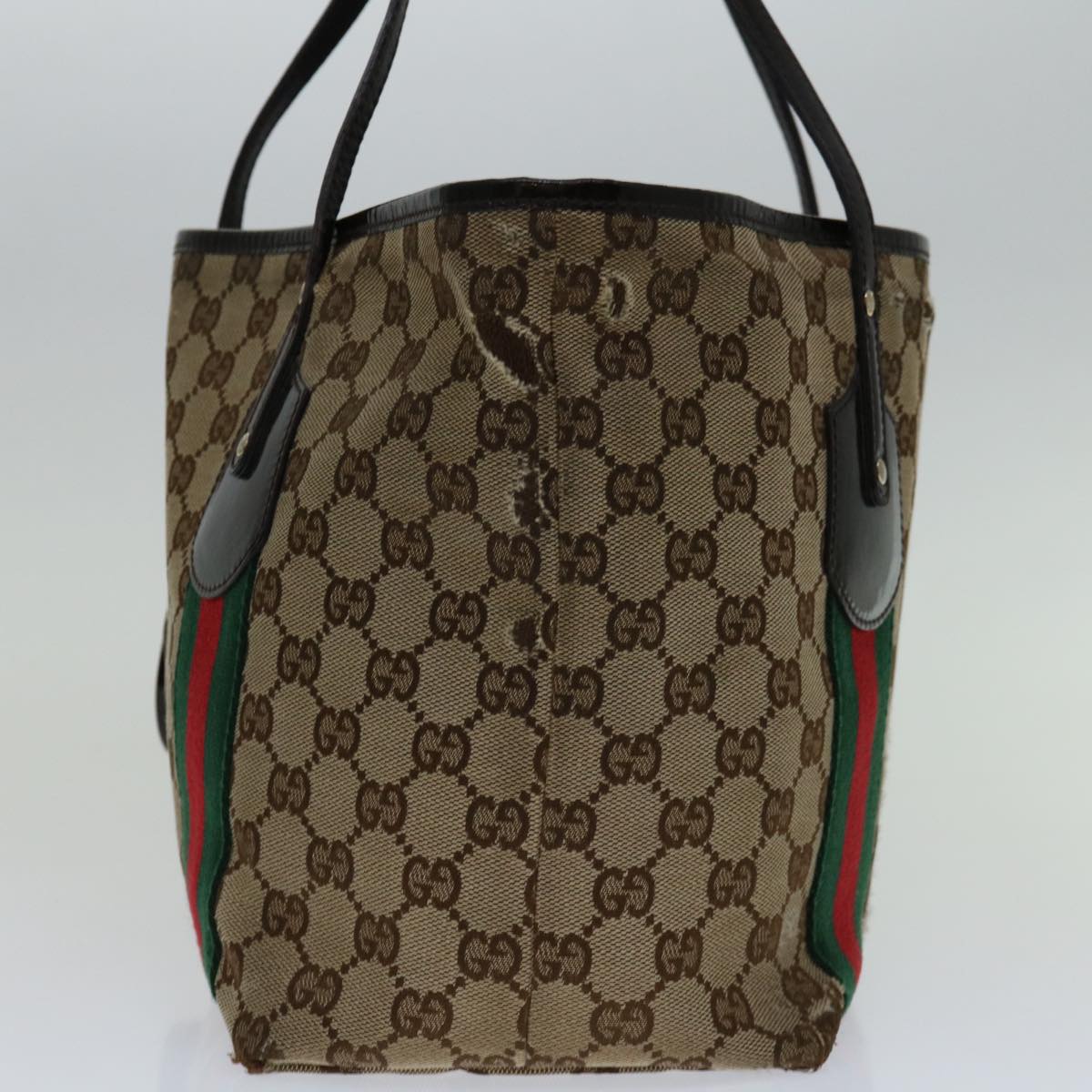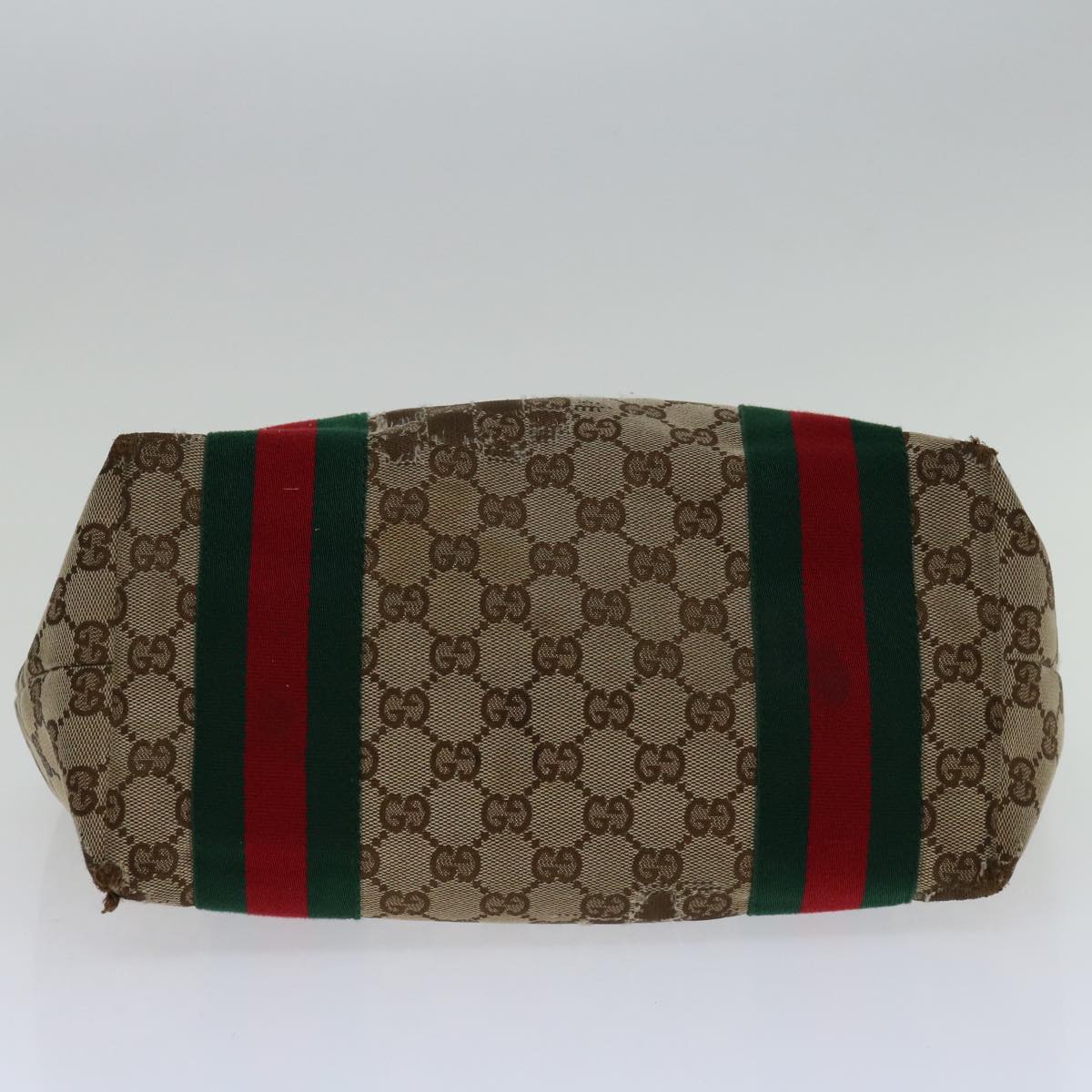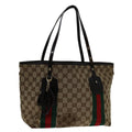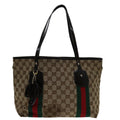 GUCCI GG Canvas Web Sherry Line Tote Bag Beige Red Green 211971 Auth 69638