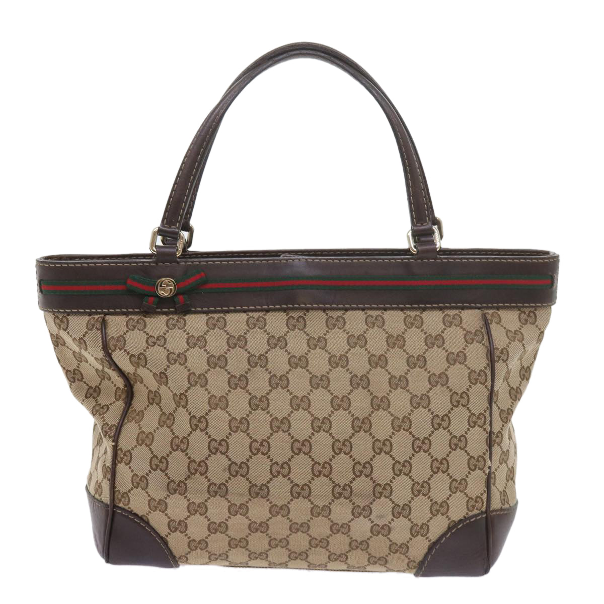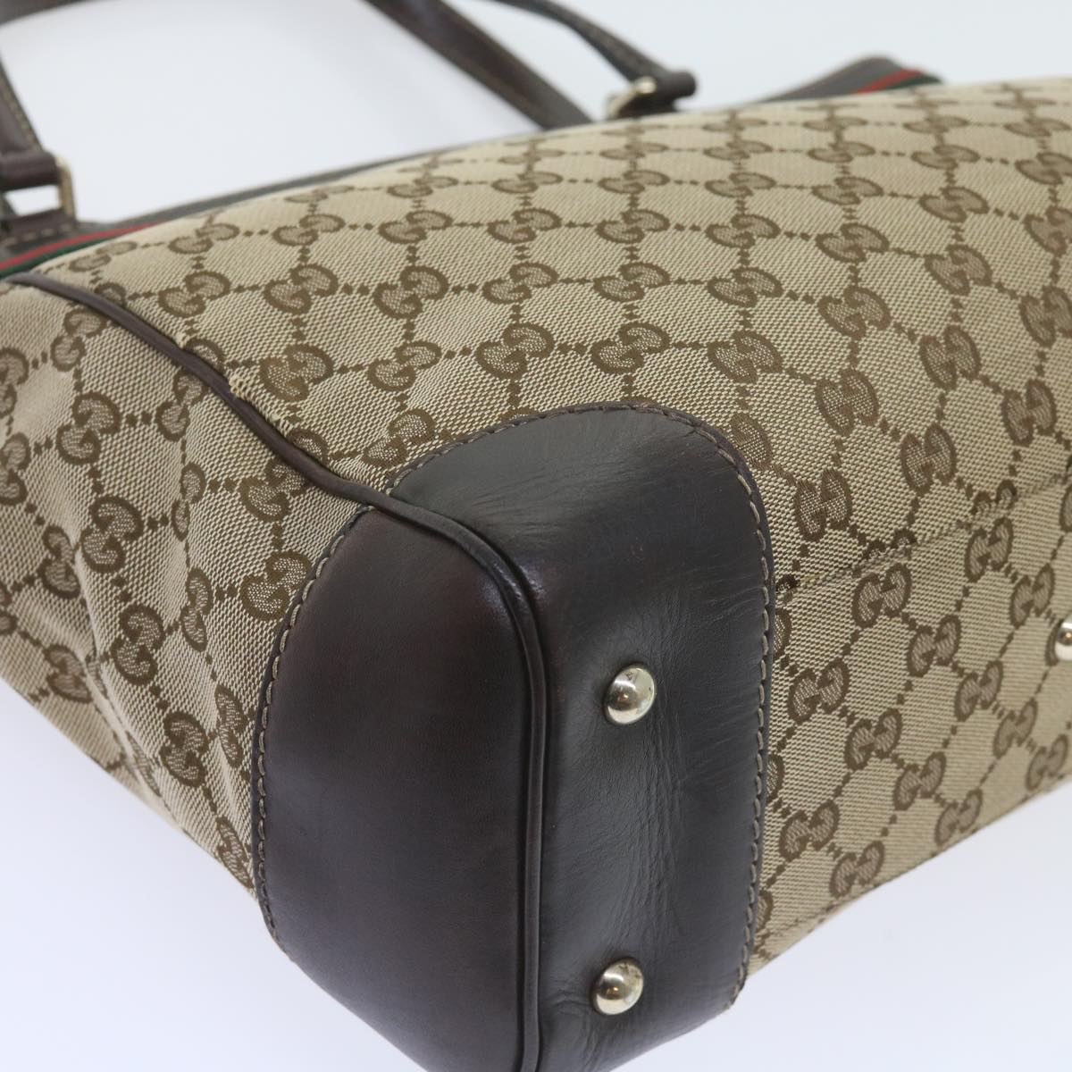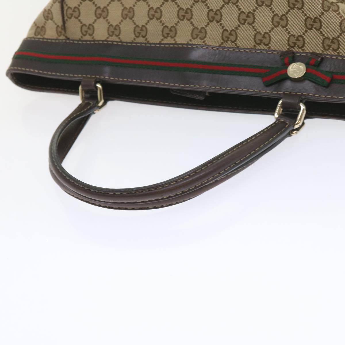 GUCCI GG Canvas Web Sherry Line Tote Bag Red Beige Green 257061 Auth 60154