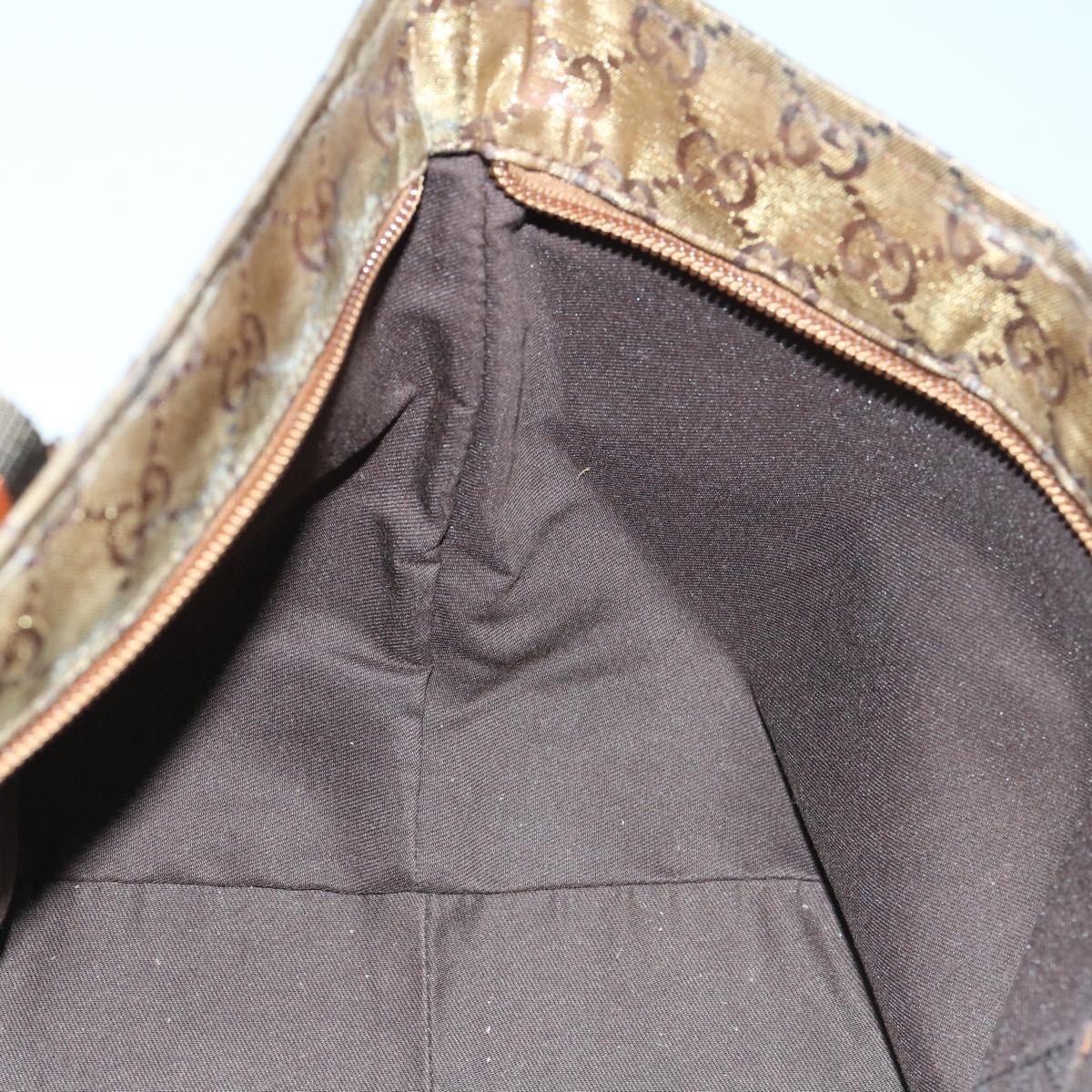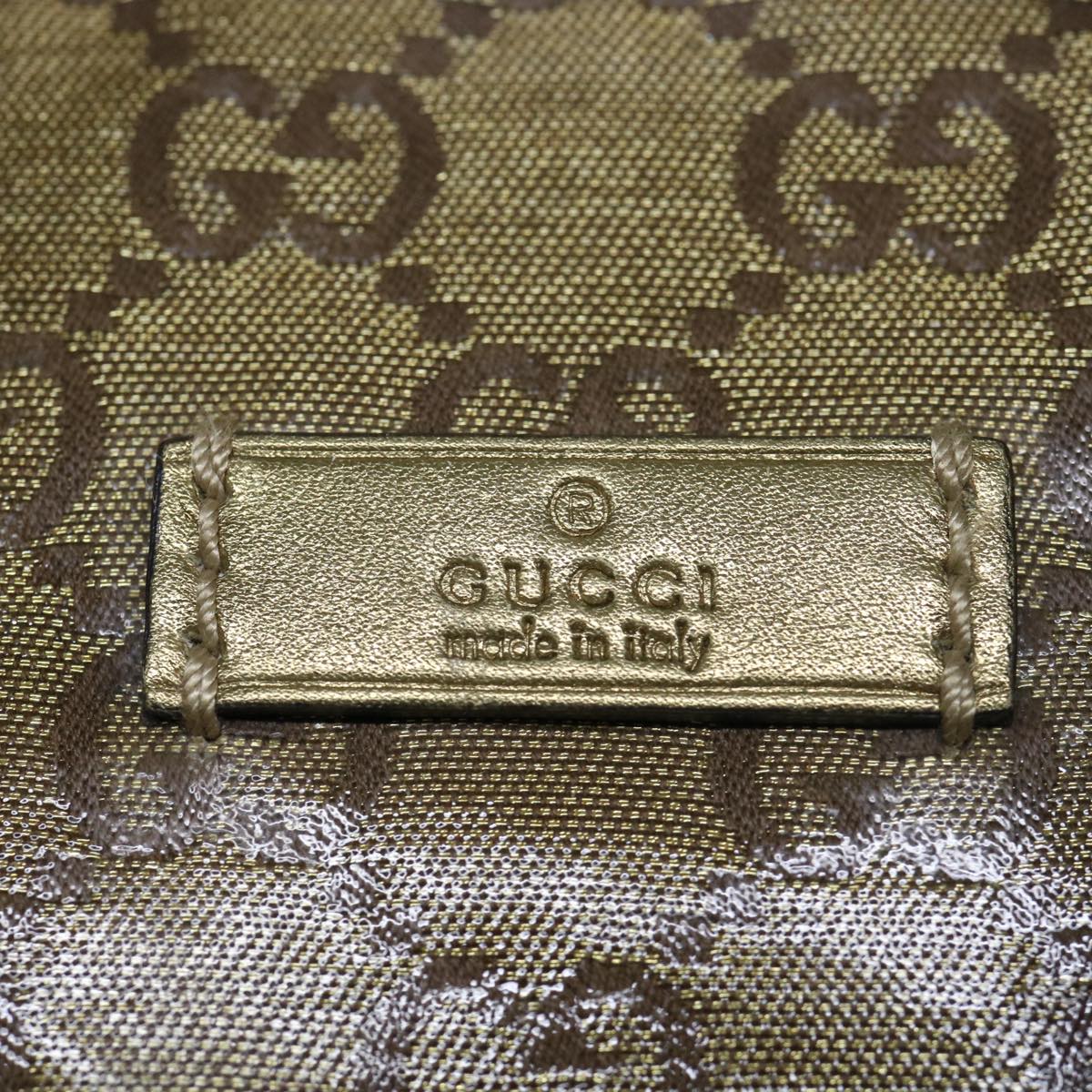 GUCCI GG Crystal Sherry Line Tote Bag Gold Tone Brown gray 131228 Auth tb959