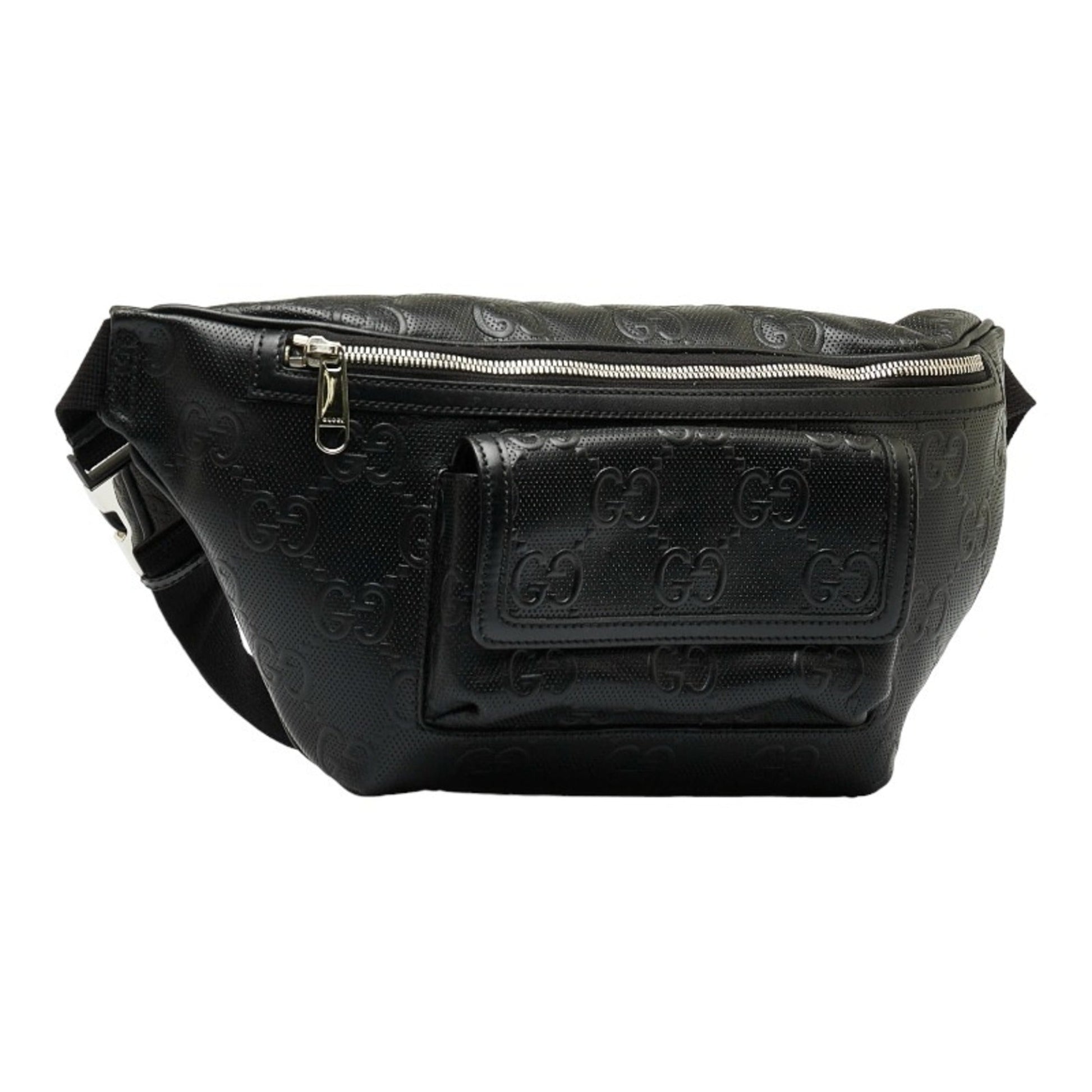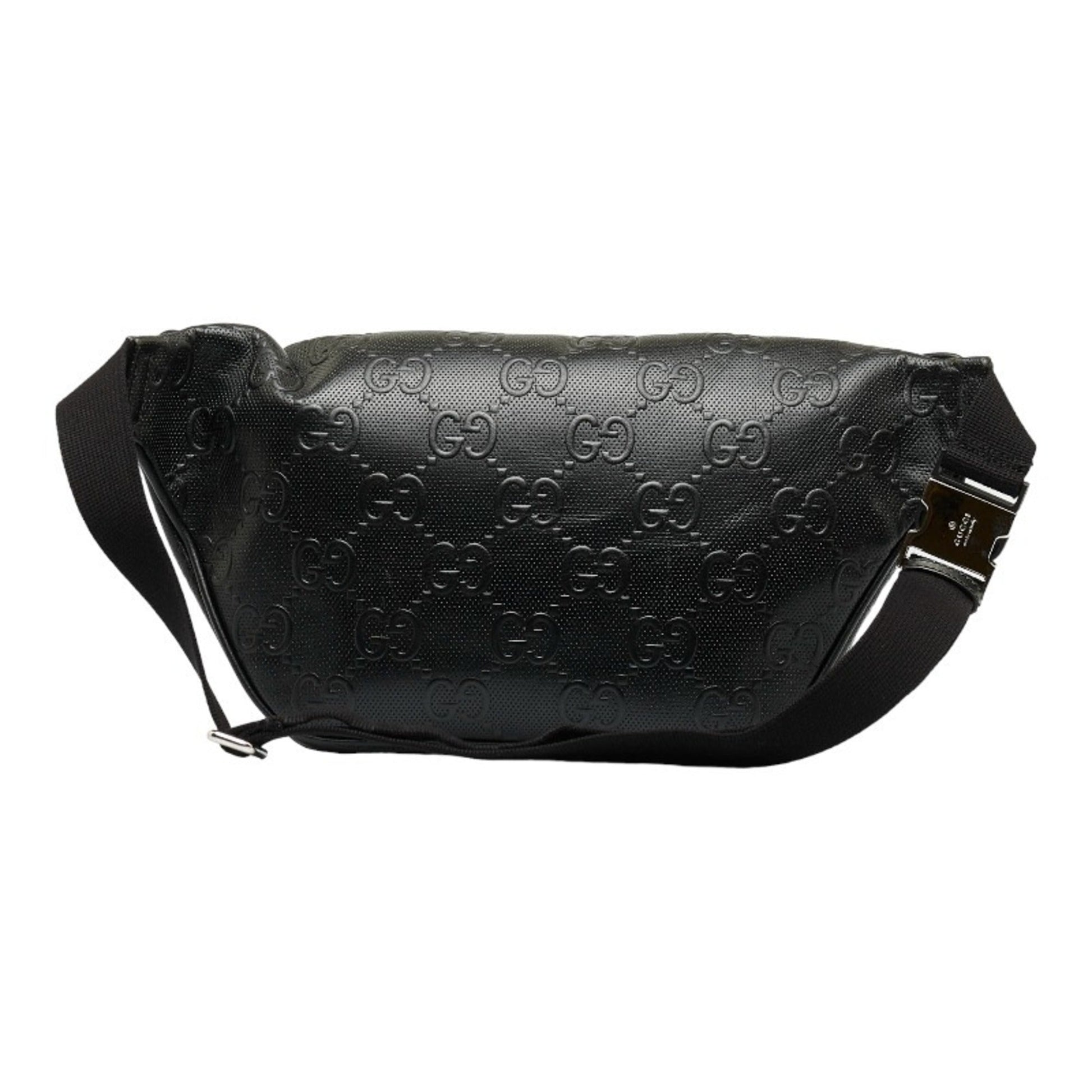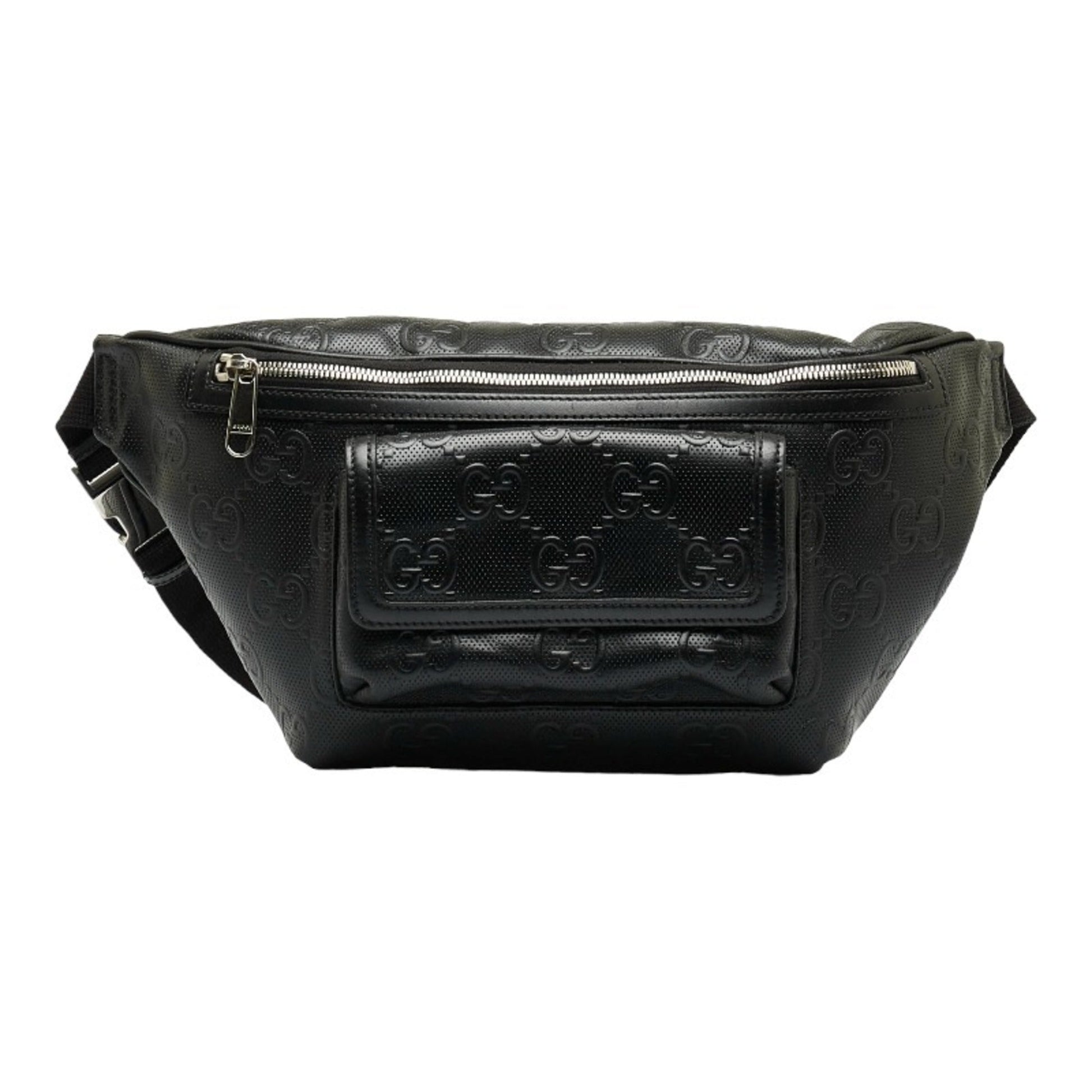Gucci GG embossed waist bag body shoulder 645093 black leather men's GUCCI
