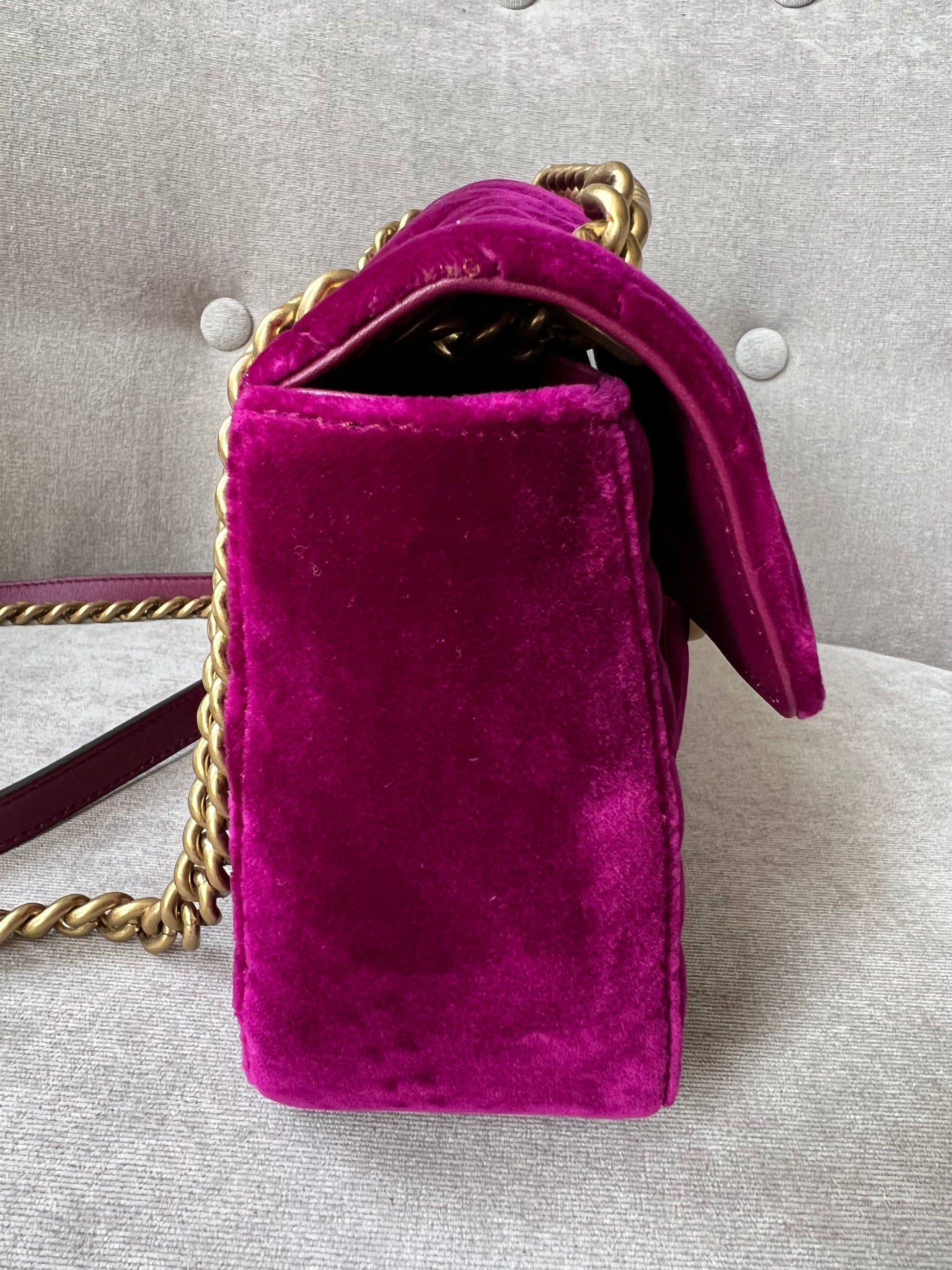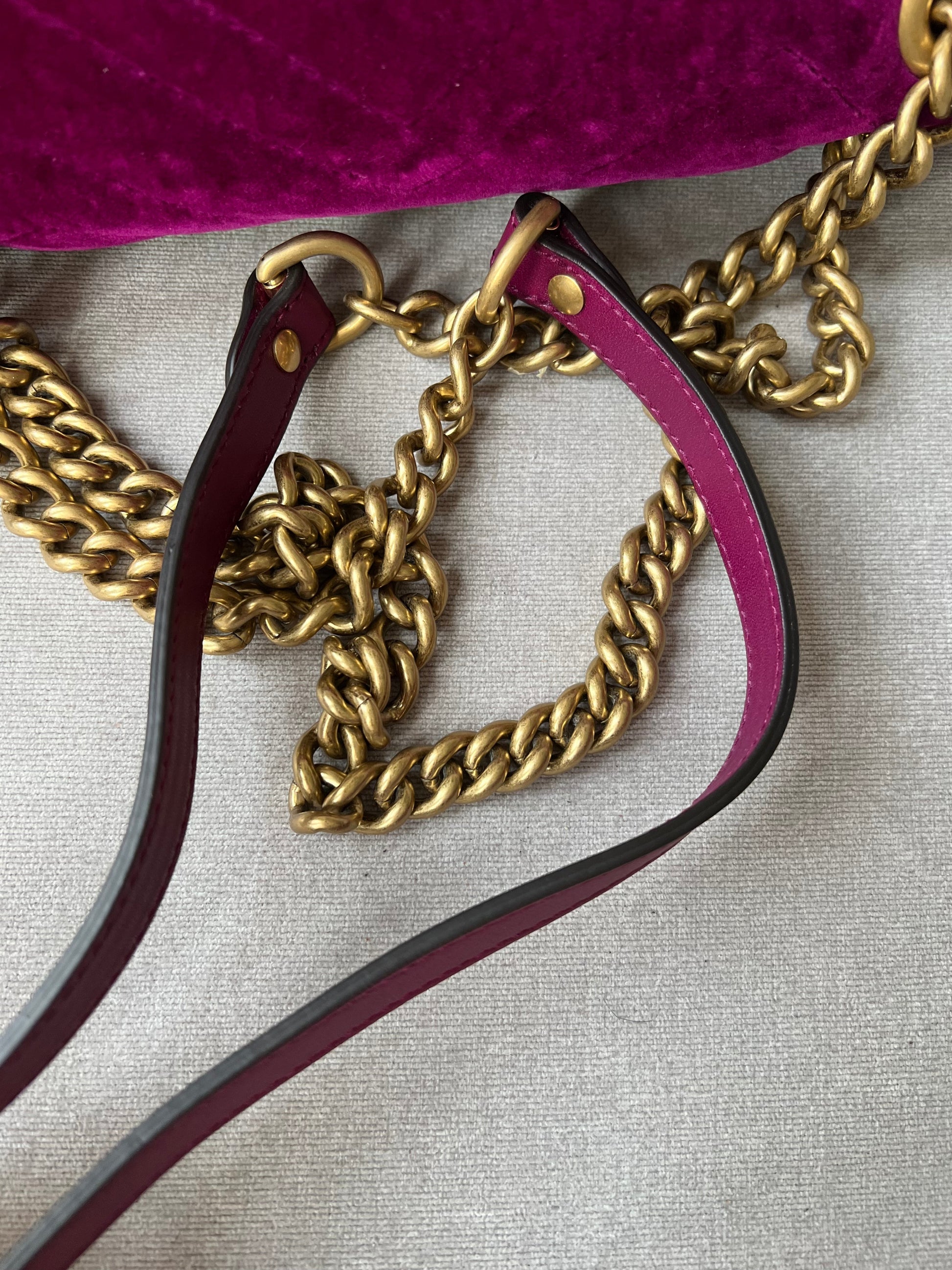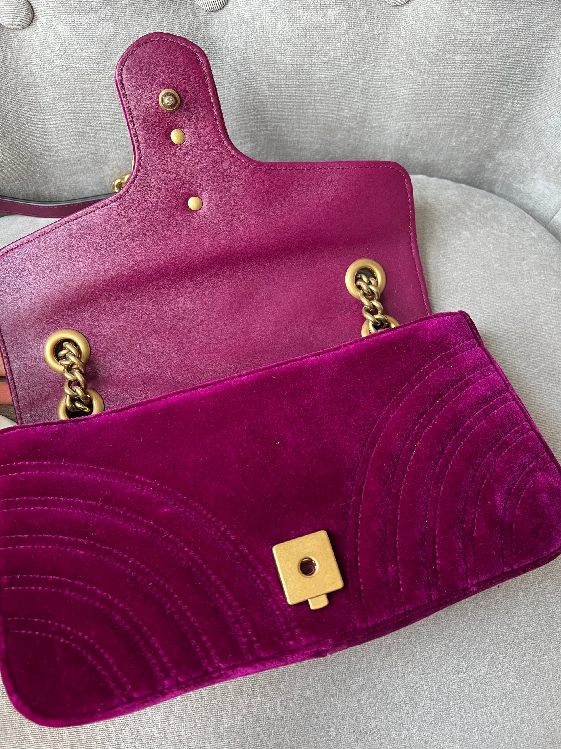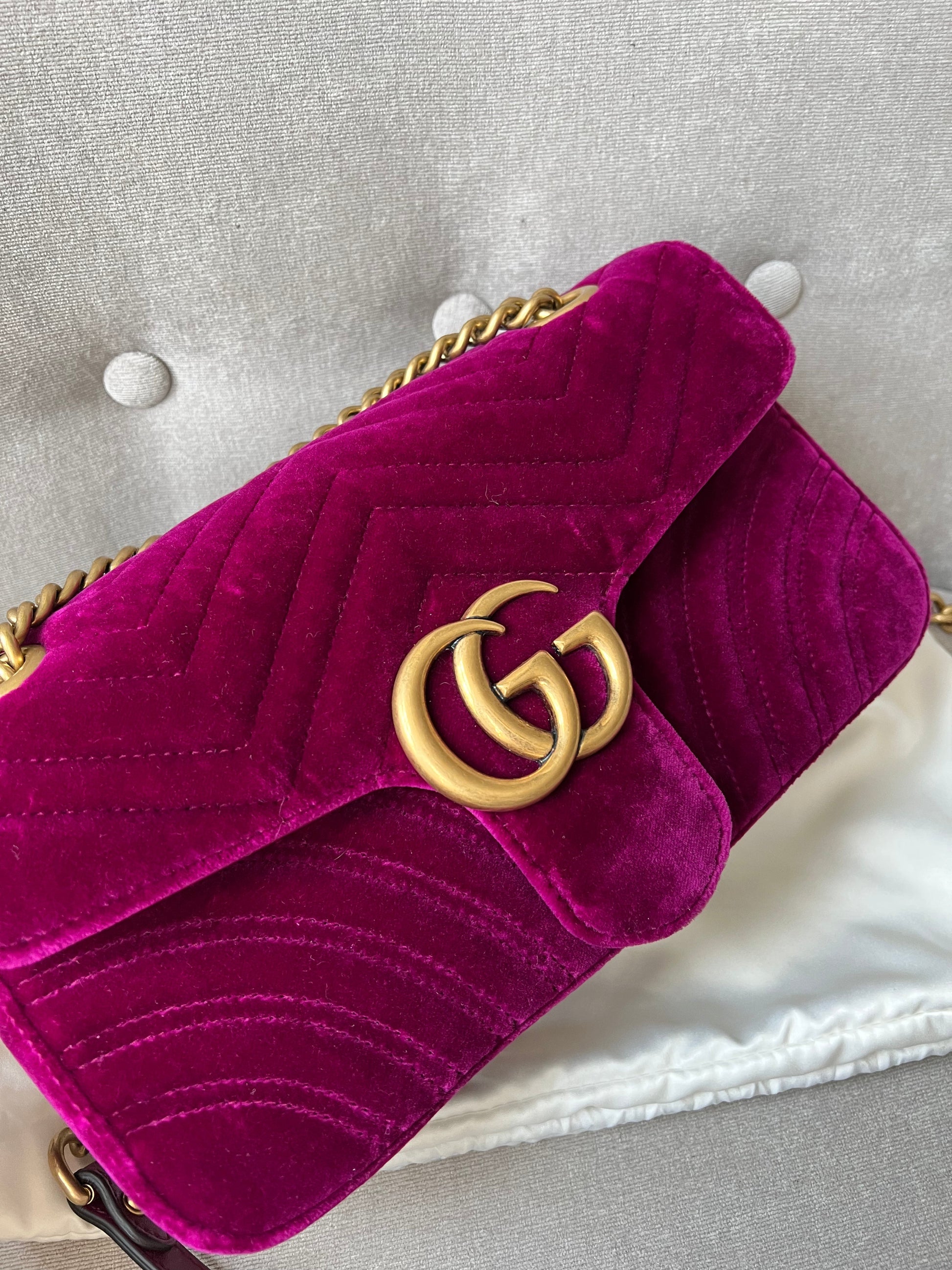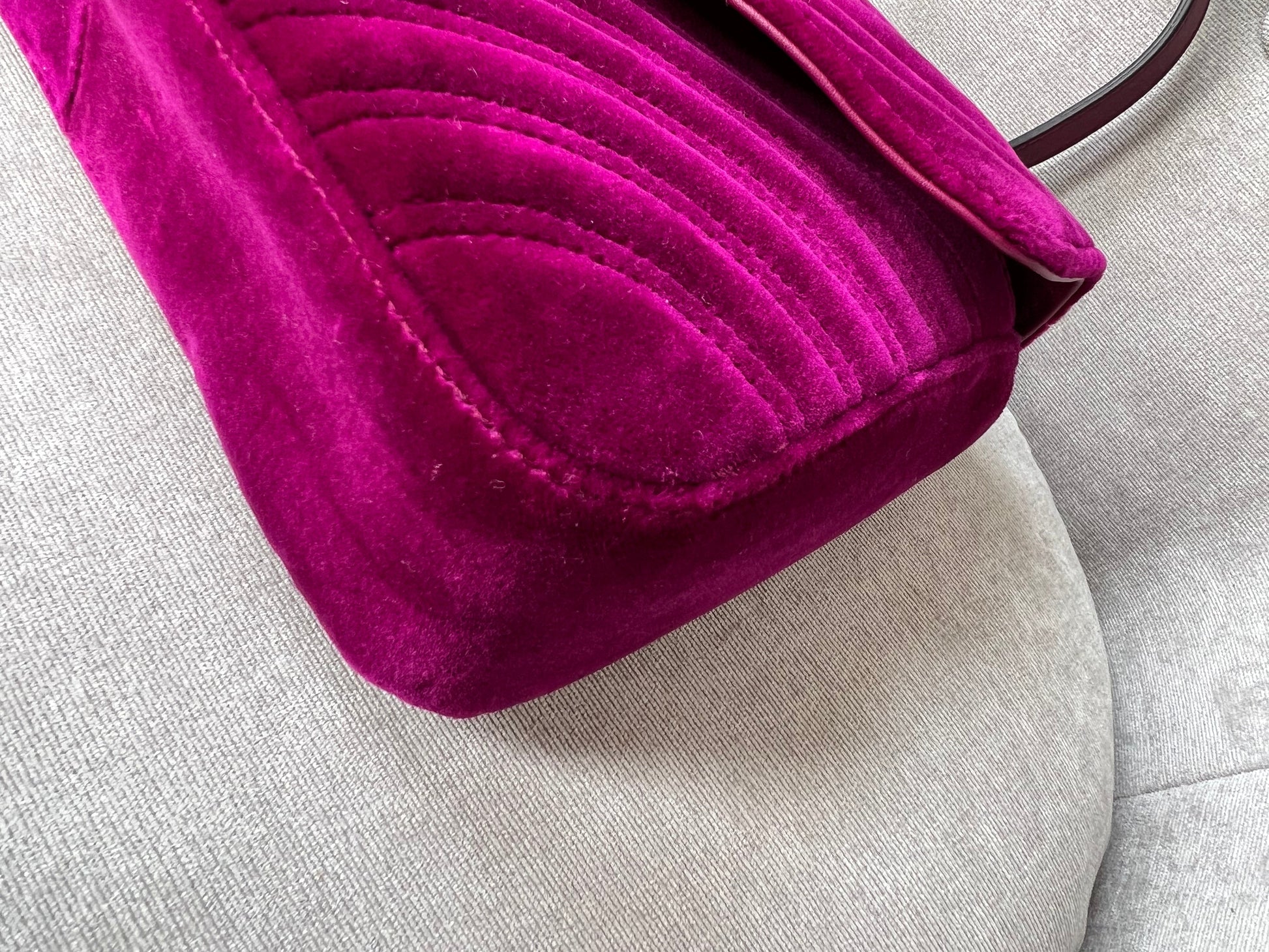 Gucci GG Fuschia Velvet tMarmont Small Shoulder Bag (RRP £1490)