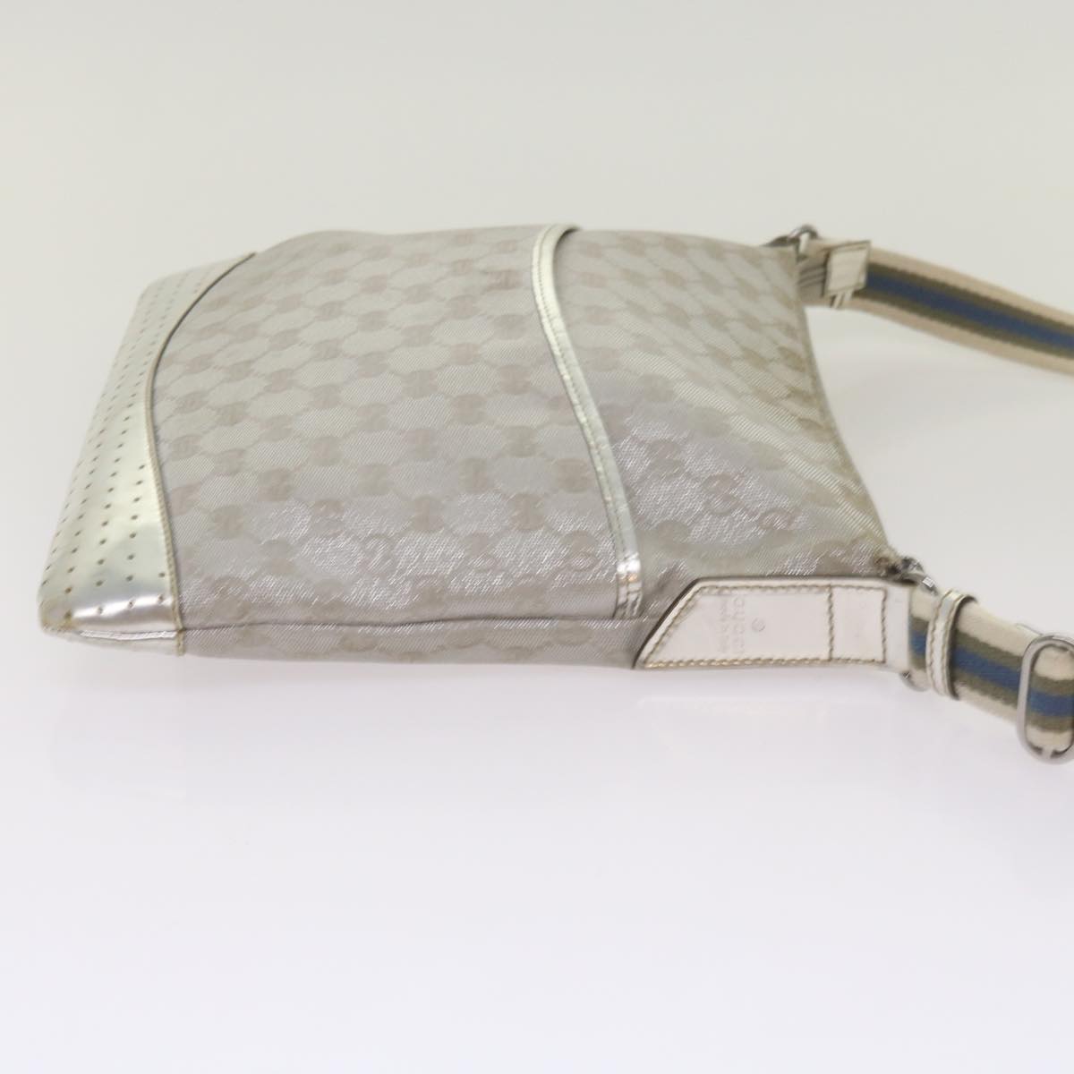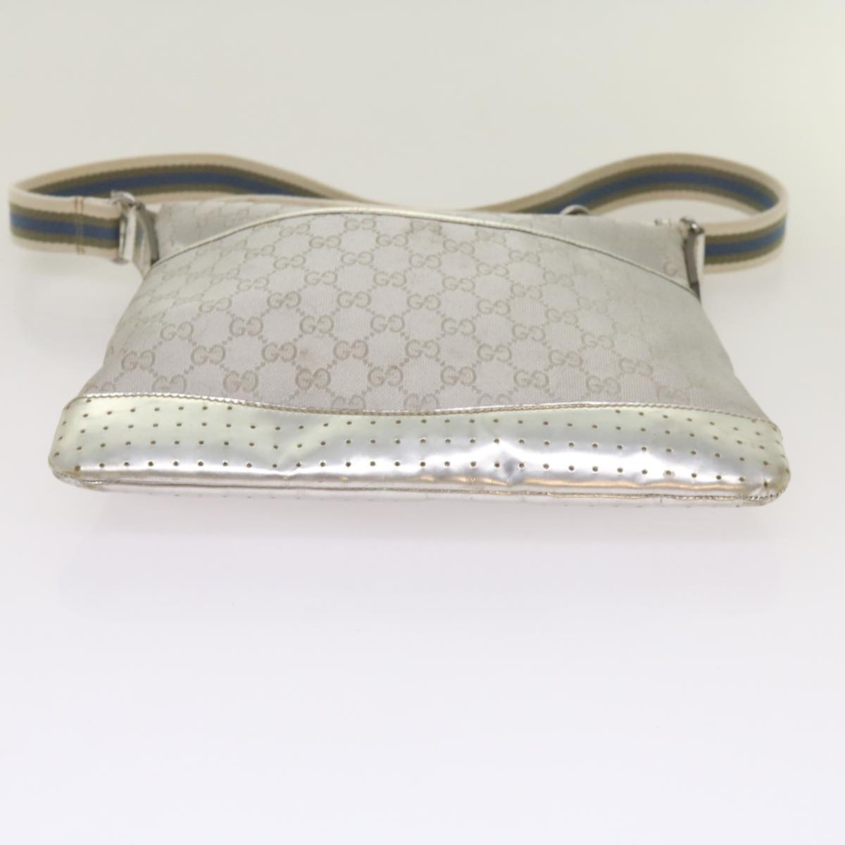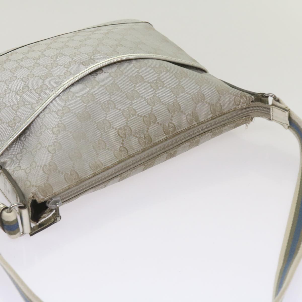 GUCCI GG implementation Sherry Line Shoulder Bag Silver Gray 145857 Auth 68676