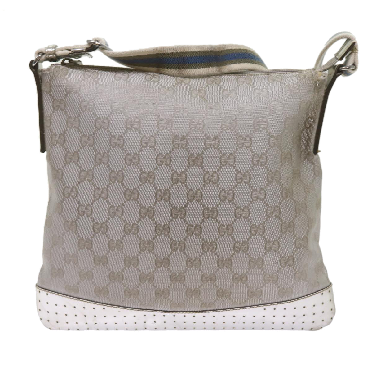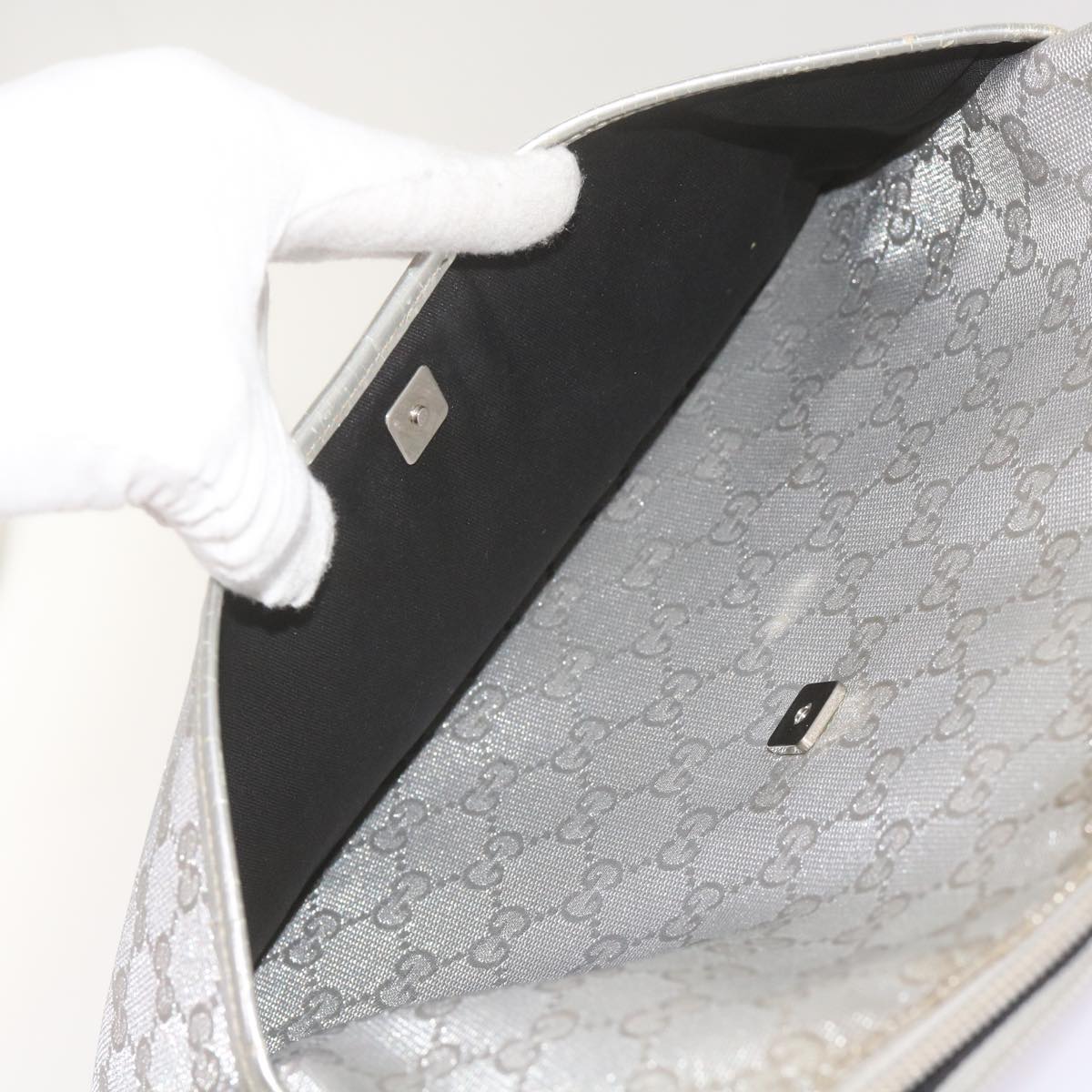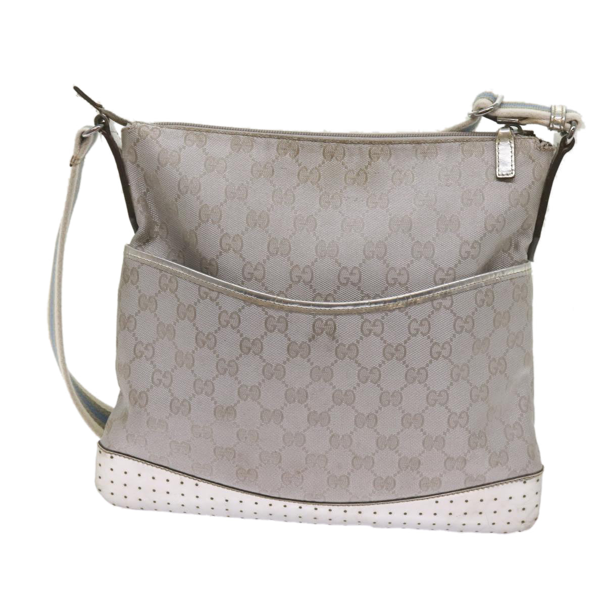 GUCCI GG implementation Sherry Line Shoulder Bag Silver Gray 145857 Auth 68676