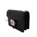 Details: Black Grained Leather / Gold-Tone Hardware / Chain-Link Shoulder Strap / Logo at Front / Fabric Interior Lining / Dual Compartments / Zipper Pocket at Inside / Flap Closure