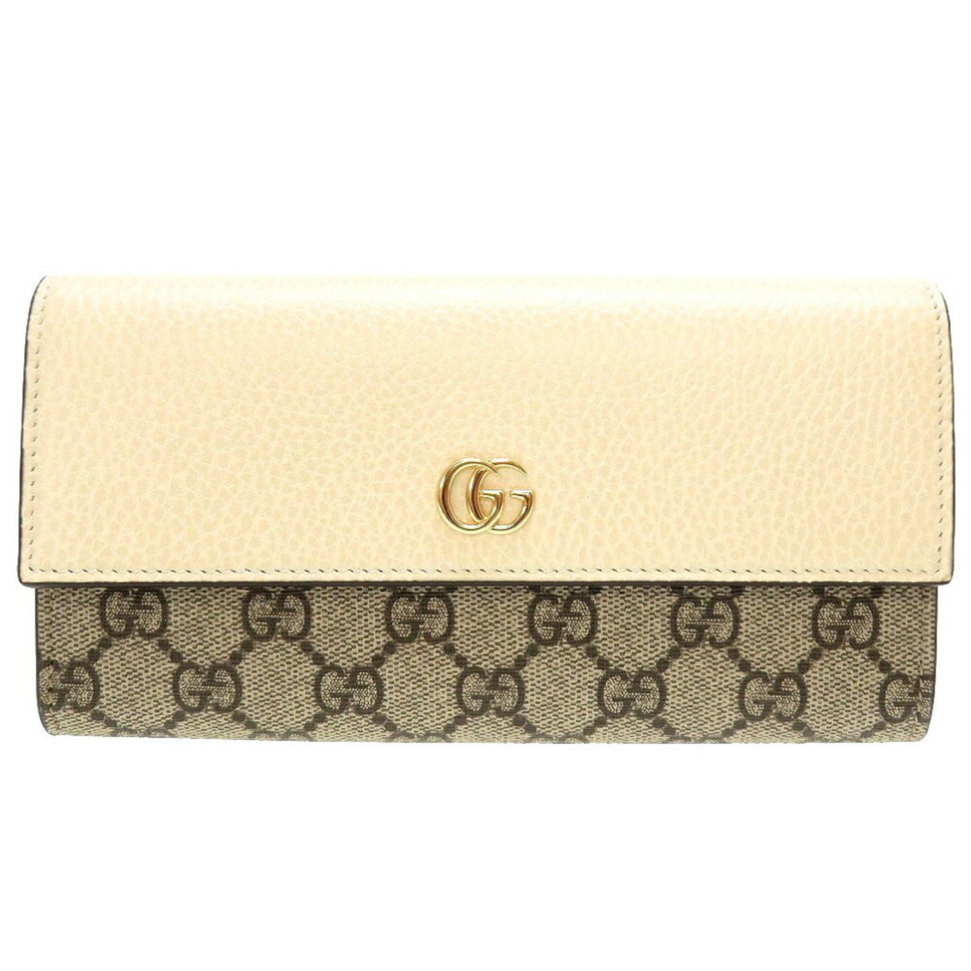 Gucci GG Marmont 456116 Continental Supreme Leather Beige White Bifold Long Wallet
