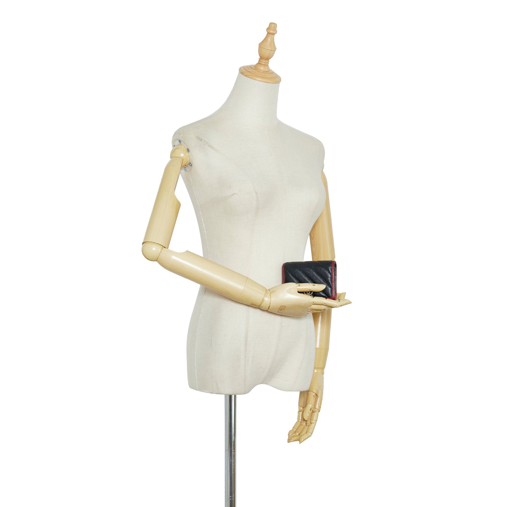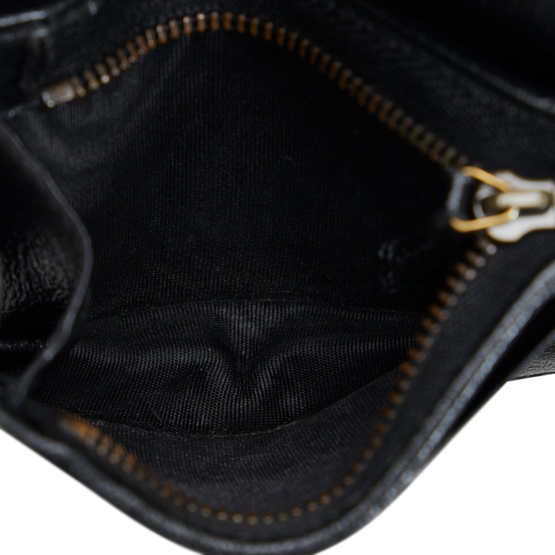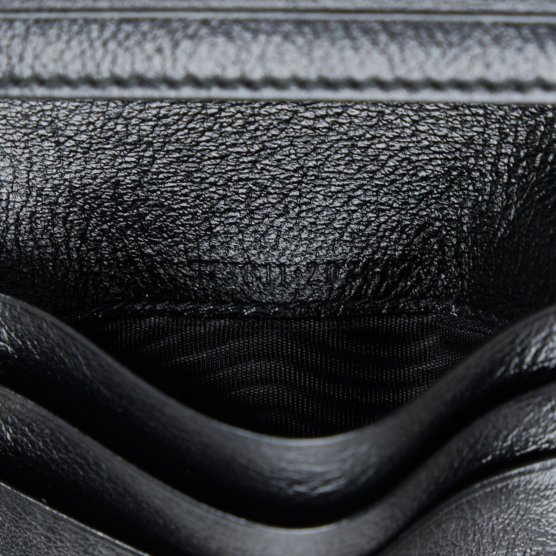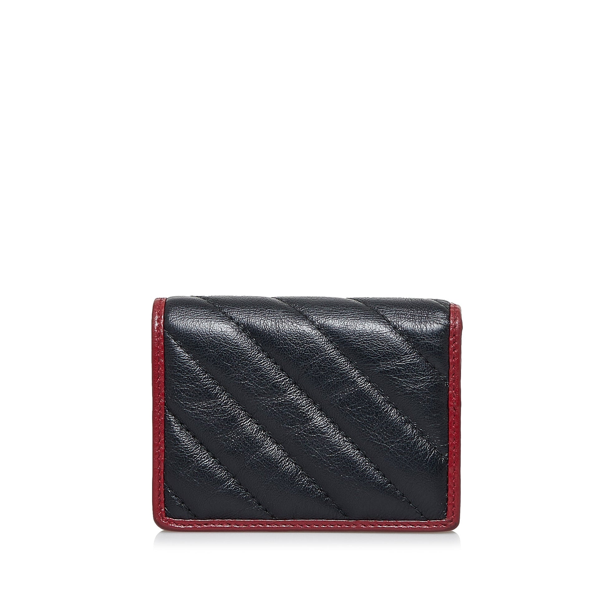 This wallet features a quilted leather body, flap with interior slip pockets. Comes with box and dust bag.
