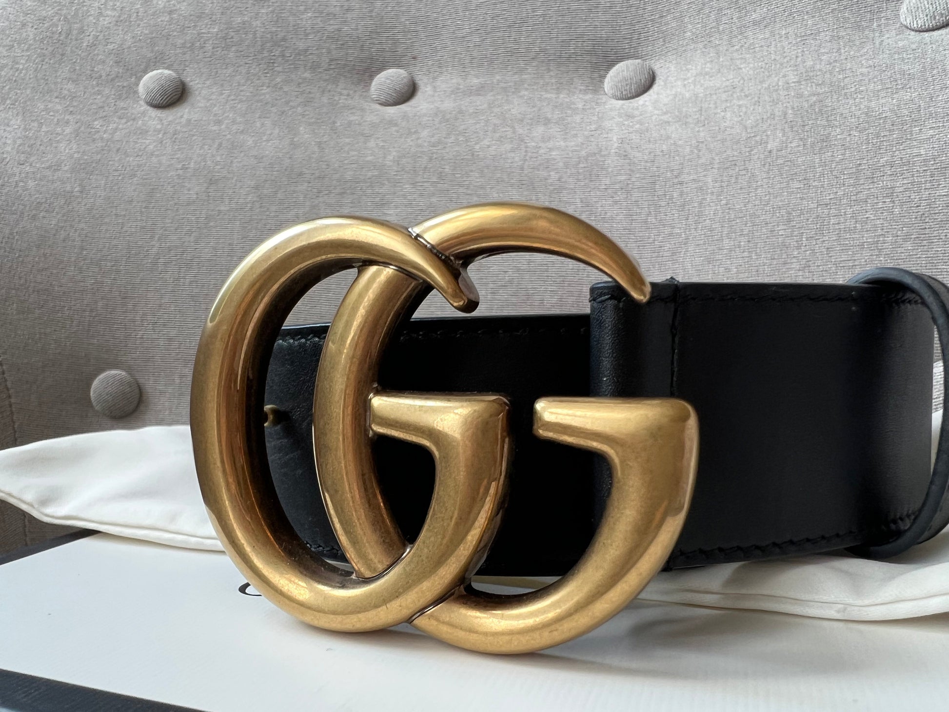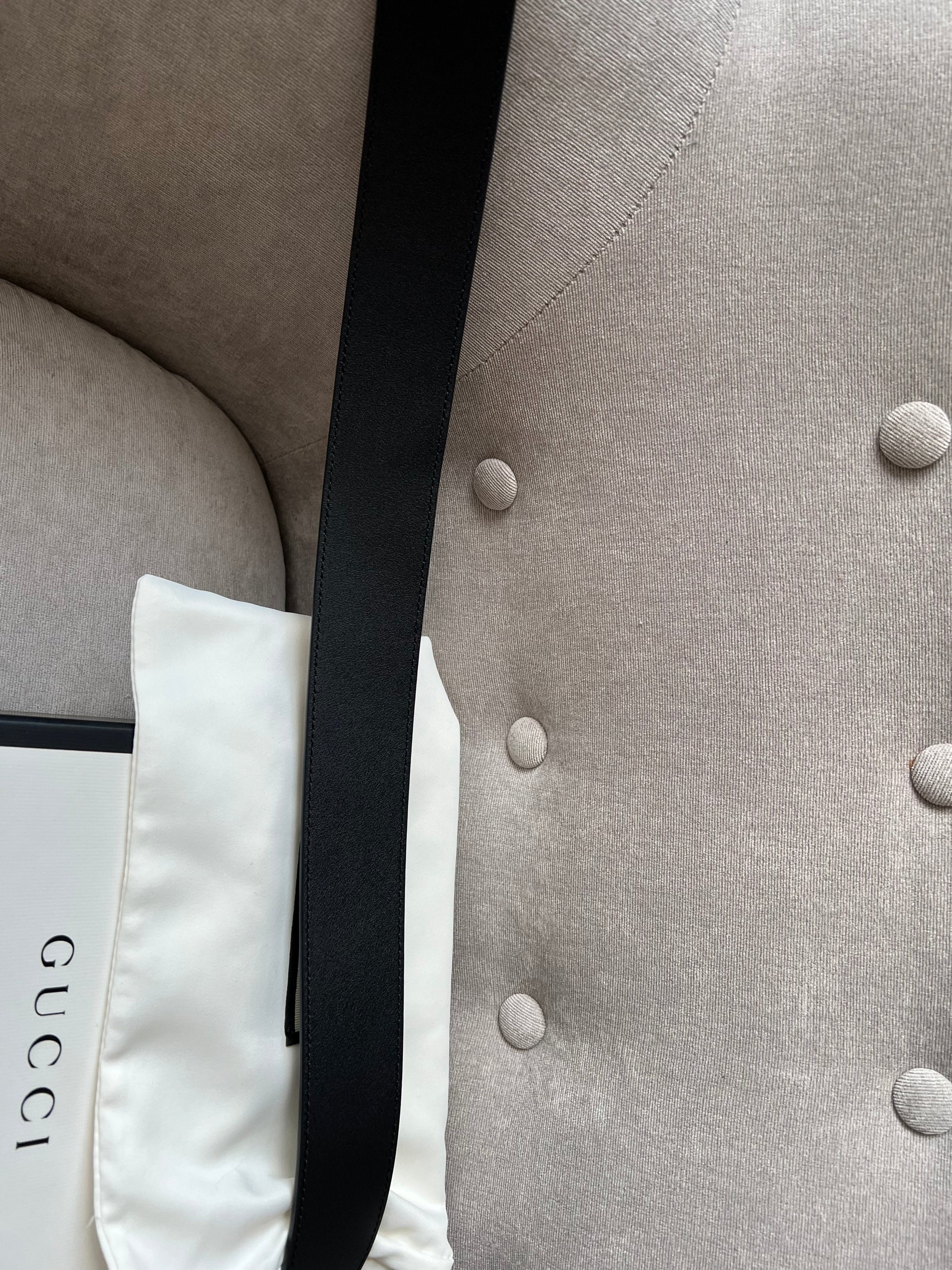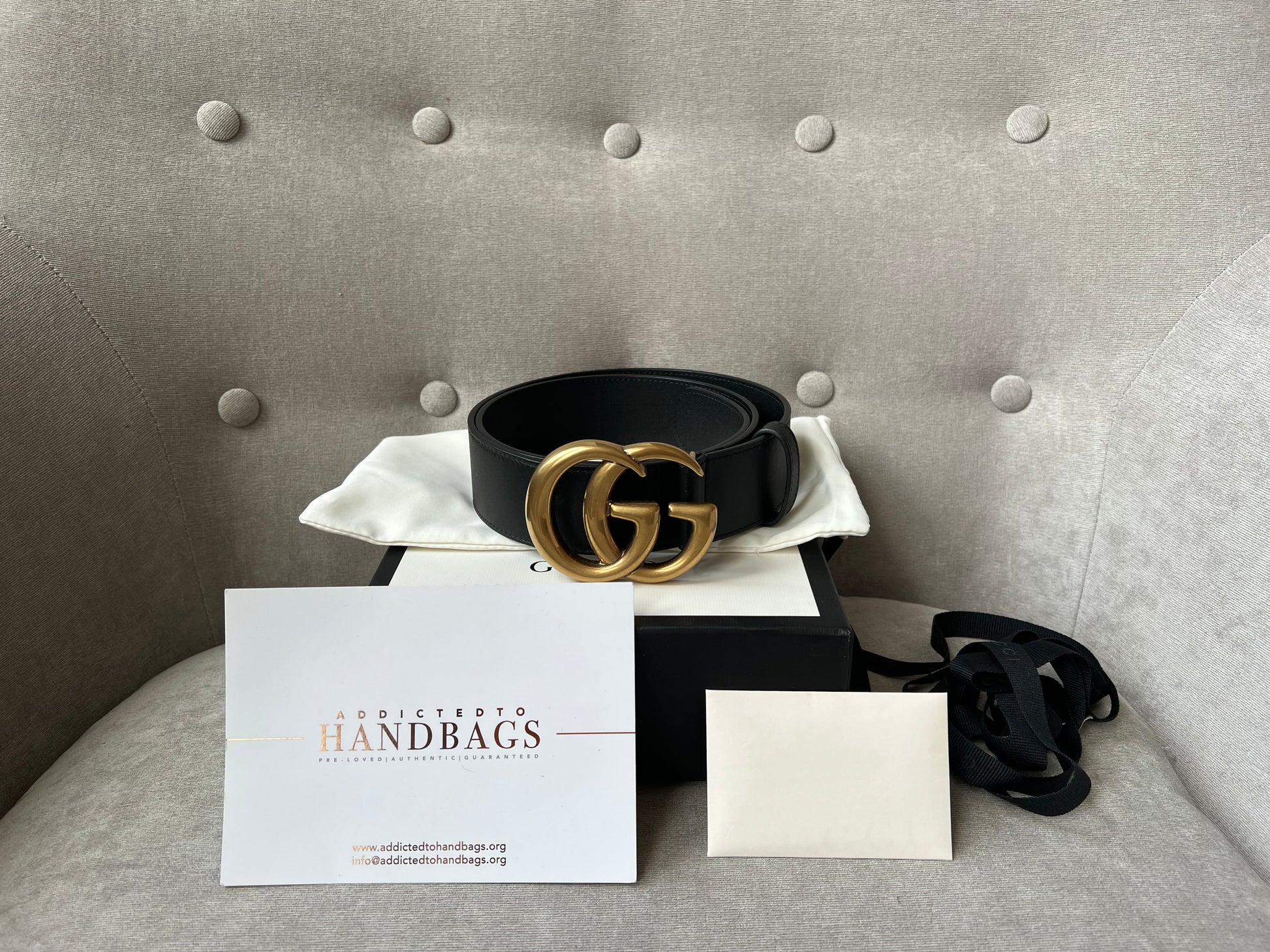 Gucci Black Marmont Leather Belt with Gold Buckle.