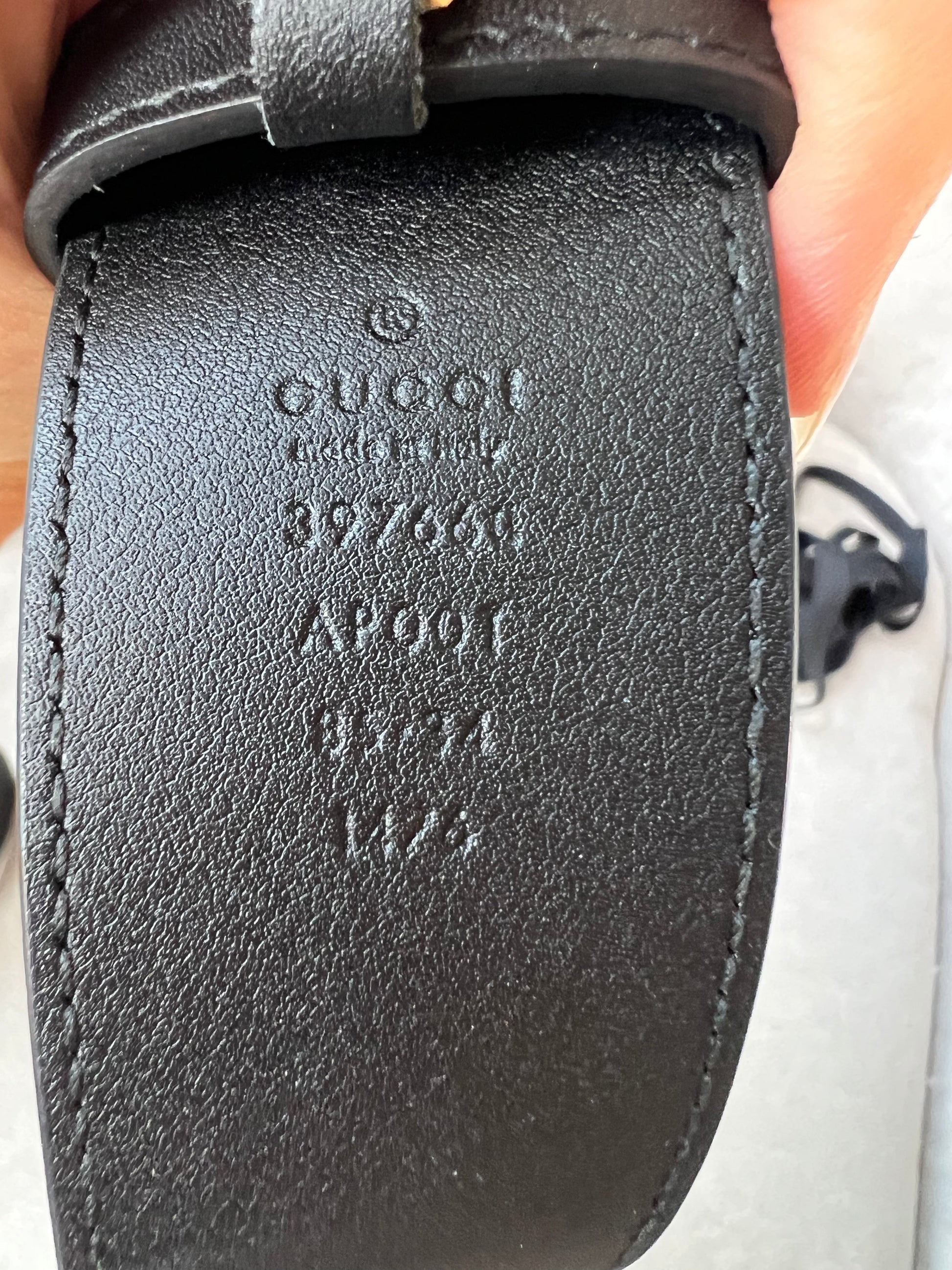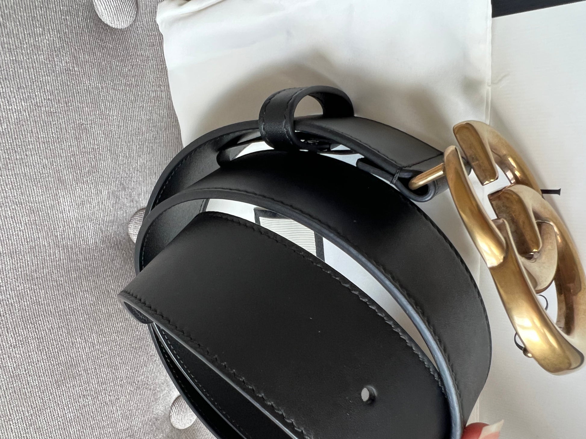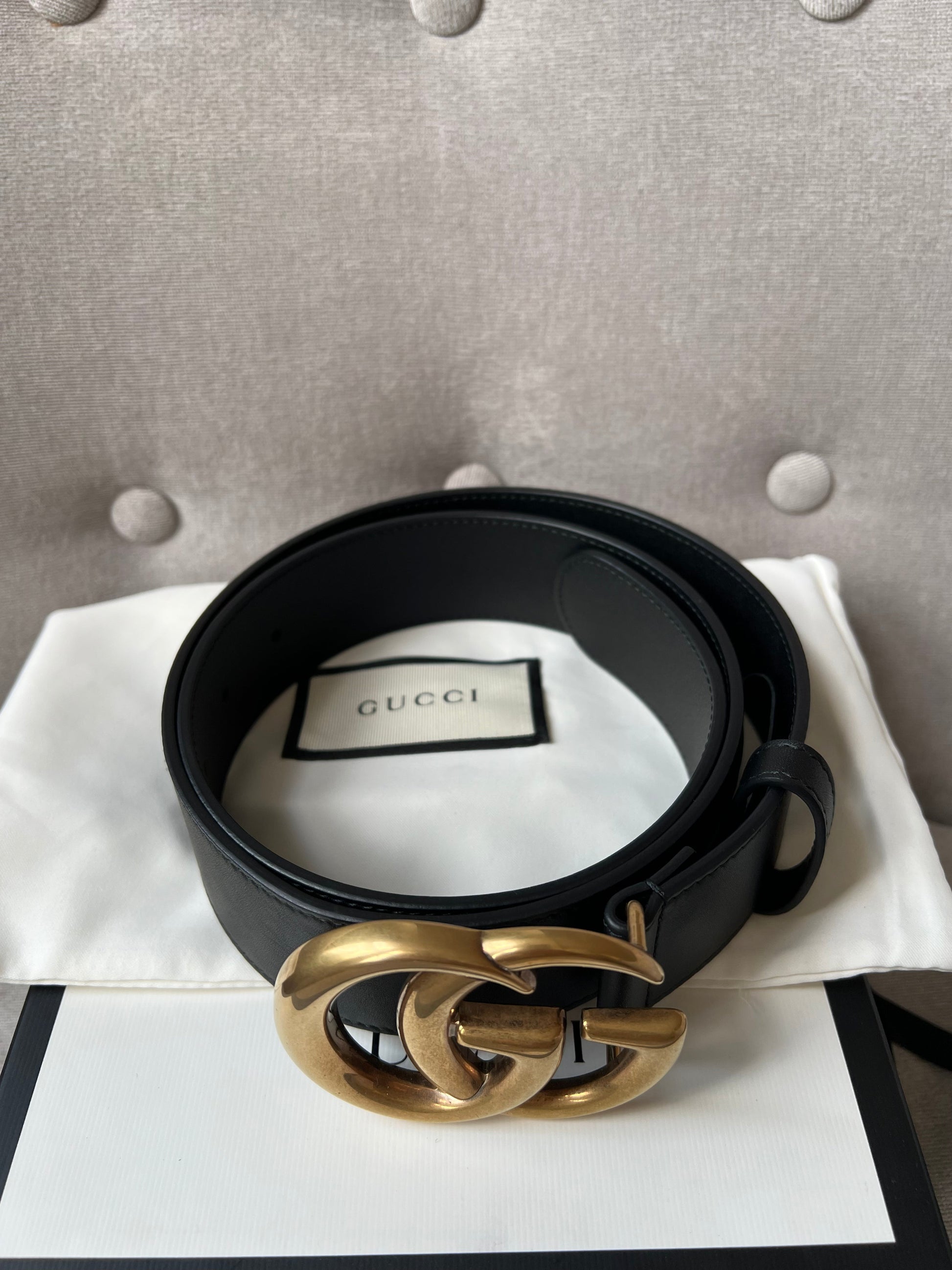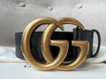 Gucci Black Marmont Leather Belt with Gold Buckle.