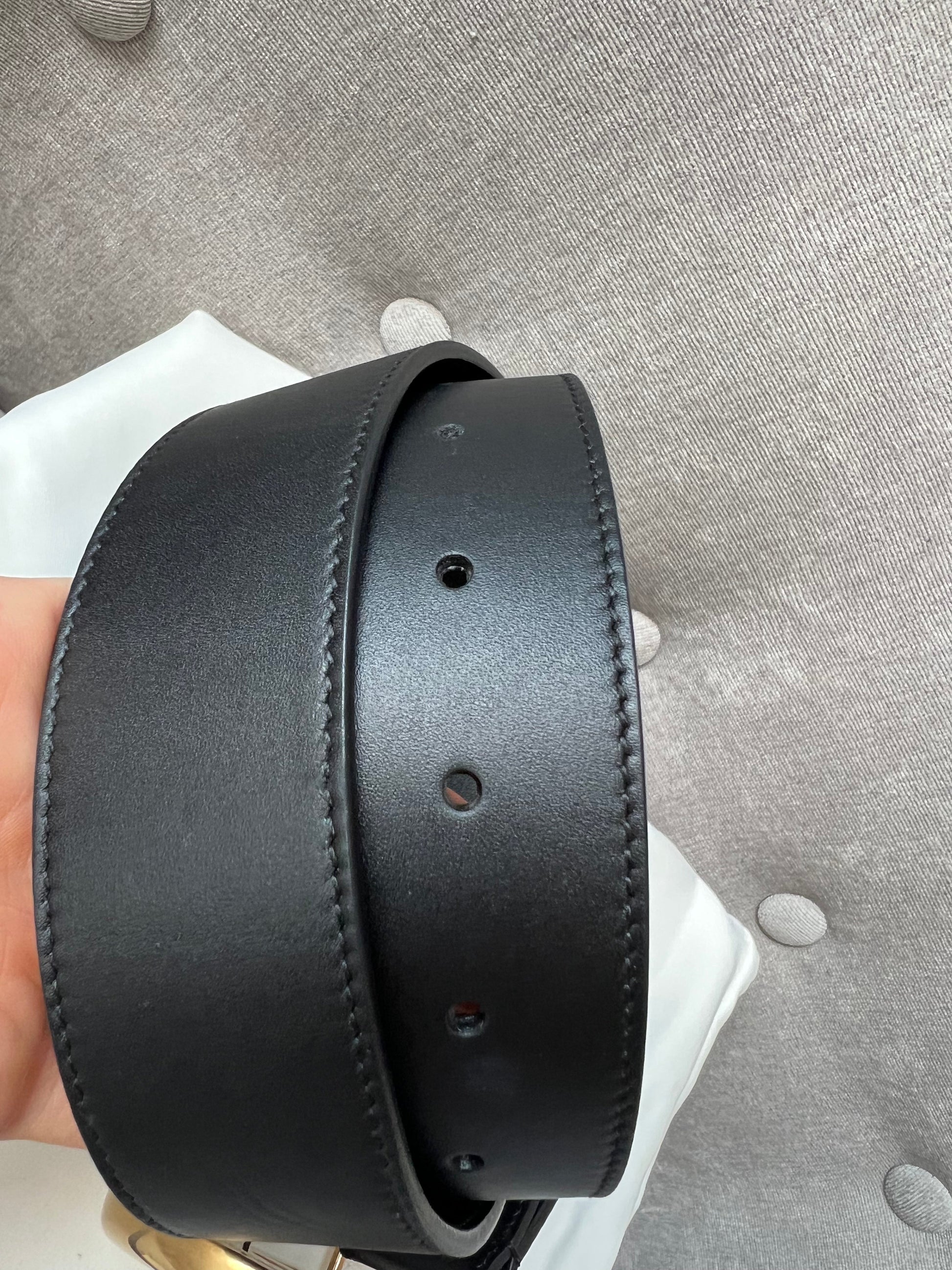 Gucci GG Marmont Black Leather Belt with Gold Buckle