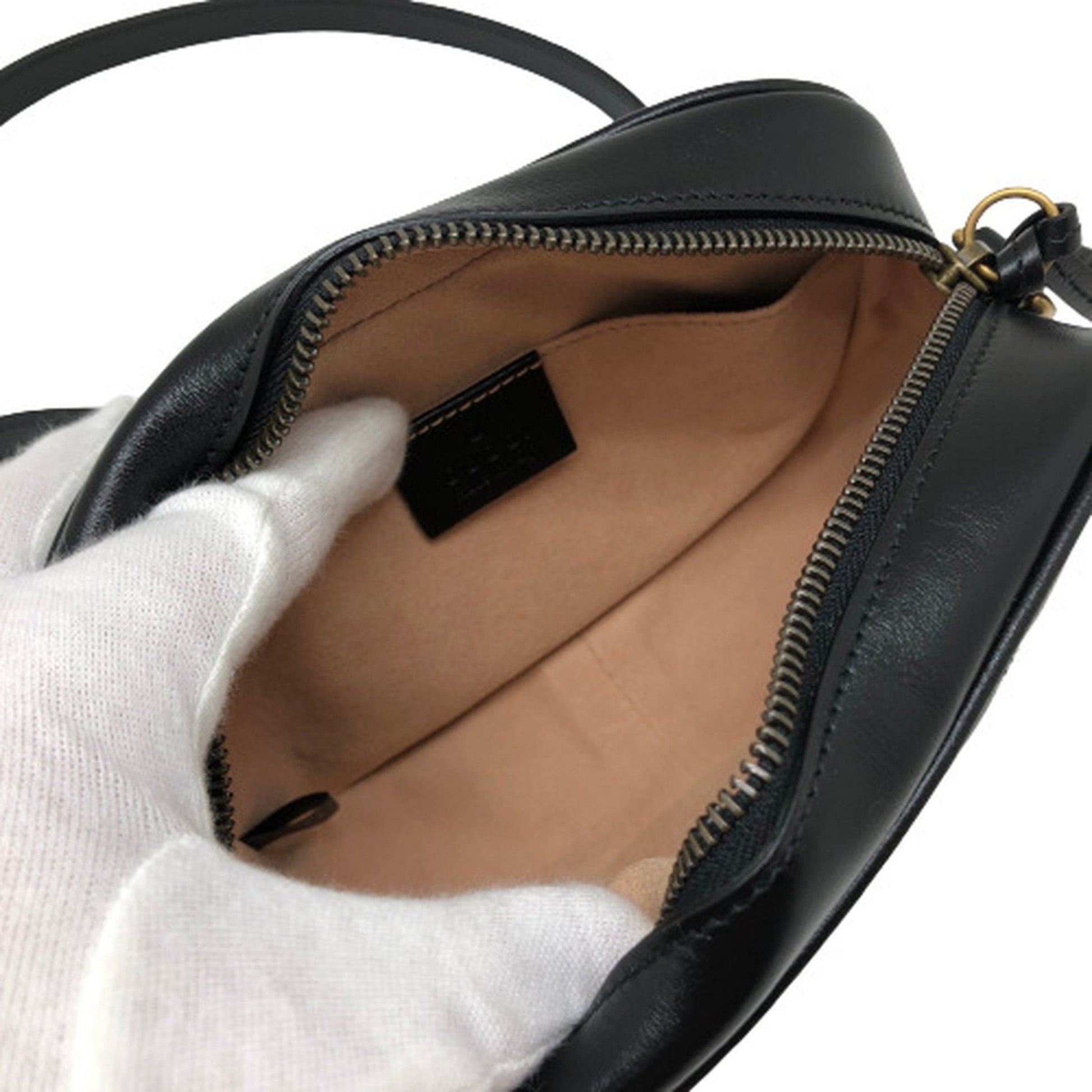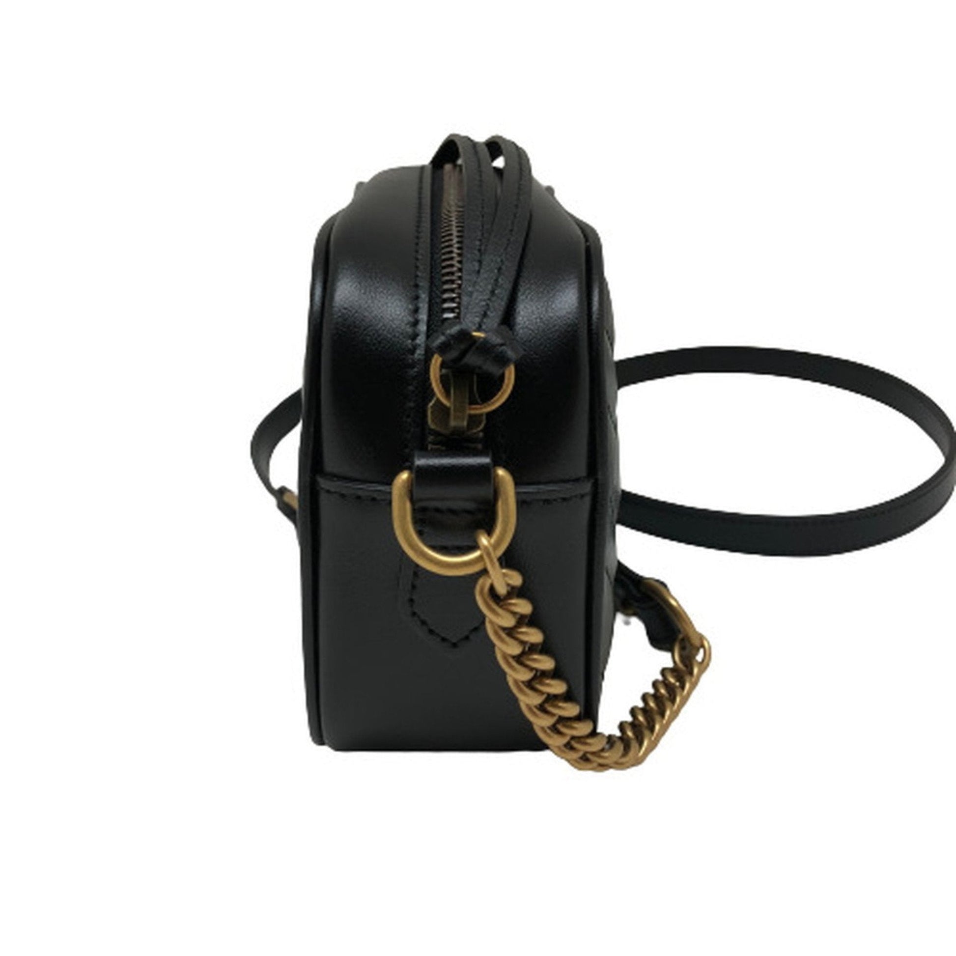 Gucci GG Marmont Chain Shoulder Bag Crossbody 448065 Leather Black Gold Hardware Women's