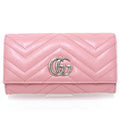 GUCCI GG Marmont Continental Wallet Bifold Long Double G Chevron Quilted Leather 443436 Pink Silver Hardware