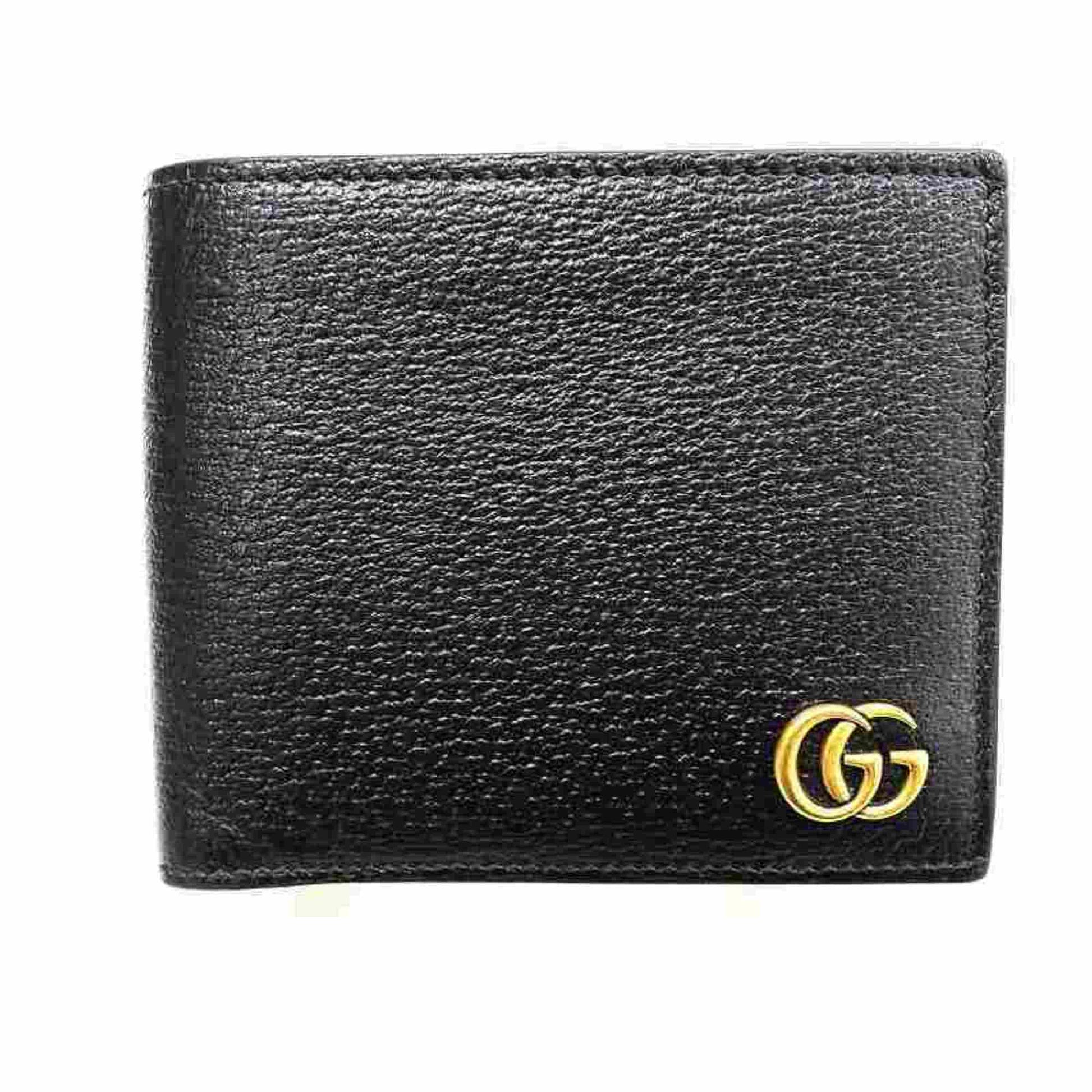 Gucci GG Marmont Fold Wallet 428725 203887 Leather Black Bifold Gold Men's Women's Unisex