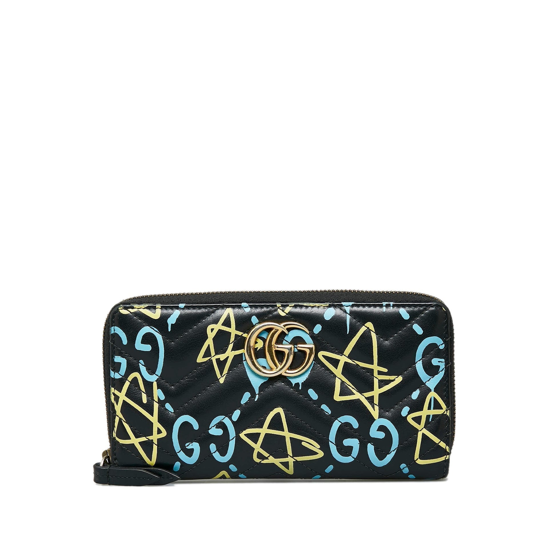 GUCCI GG Marmont Ghost Leather Zip Around Wallet Long Wallets