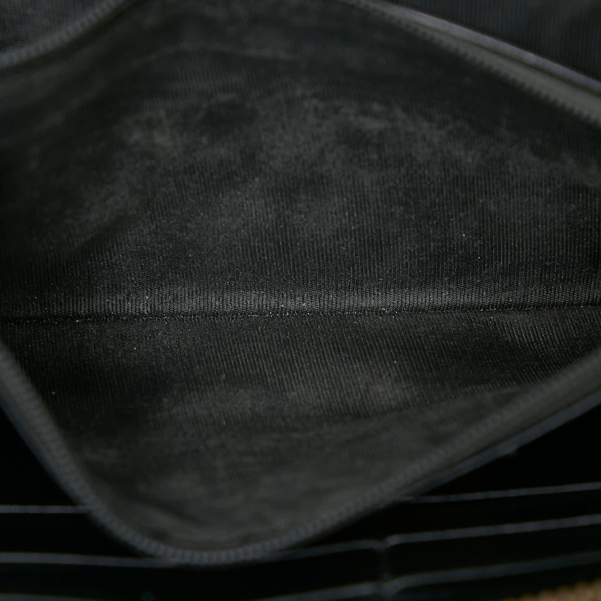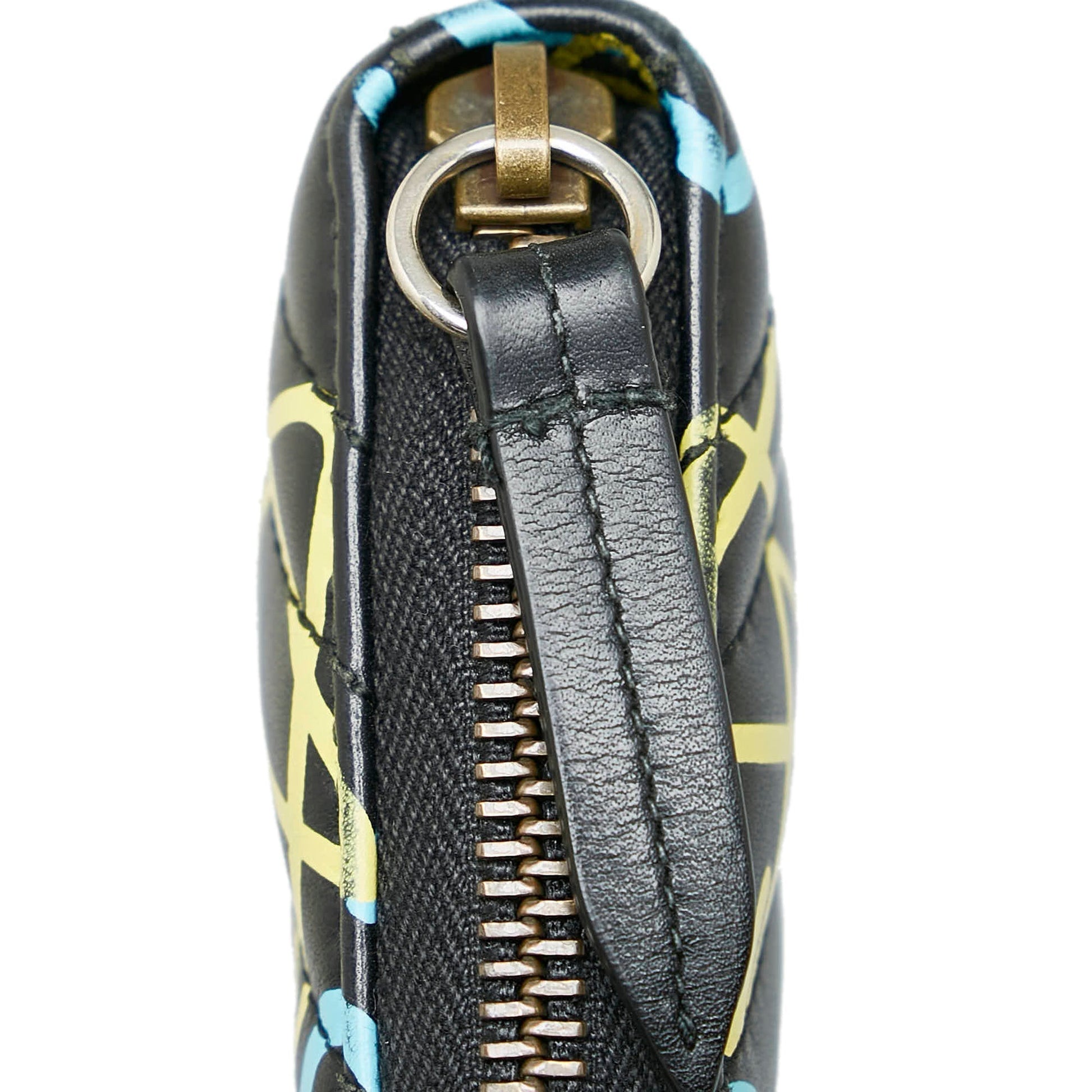 This long wallet features a printed and quilted leather body, zip around closure, and interior zip and slip pockets.