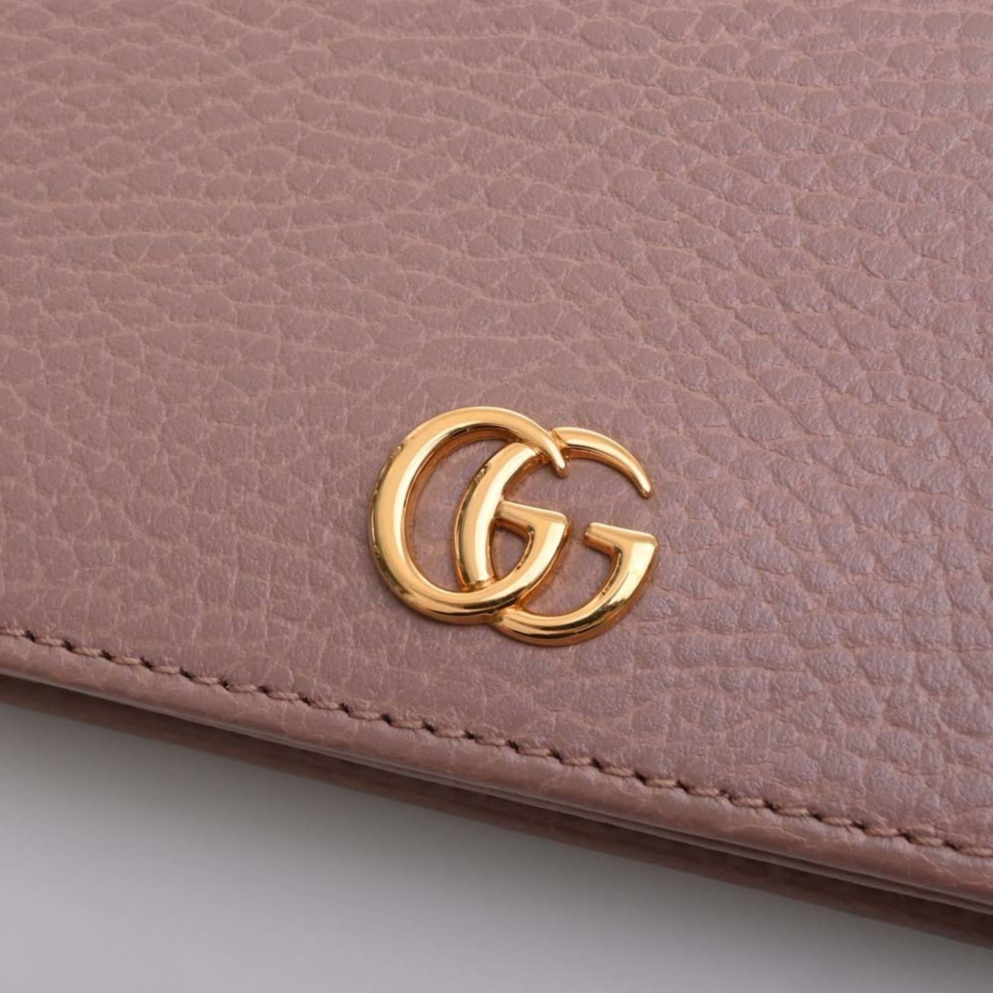 Gucci GG Marmont Leather Bifold Wallet 456126 Pink Beige Women's