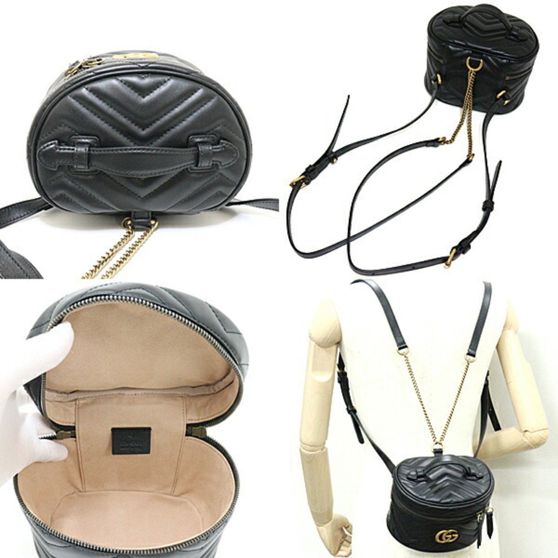 Gucci GG Marmont Mini Backpack 598594 Black Quilted Leather Double G Vanity