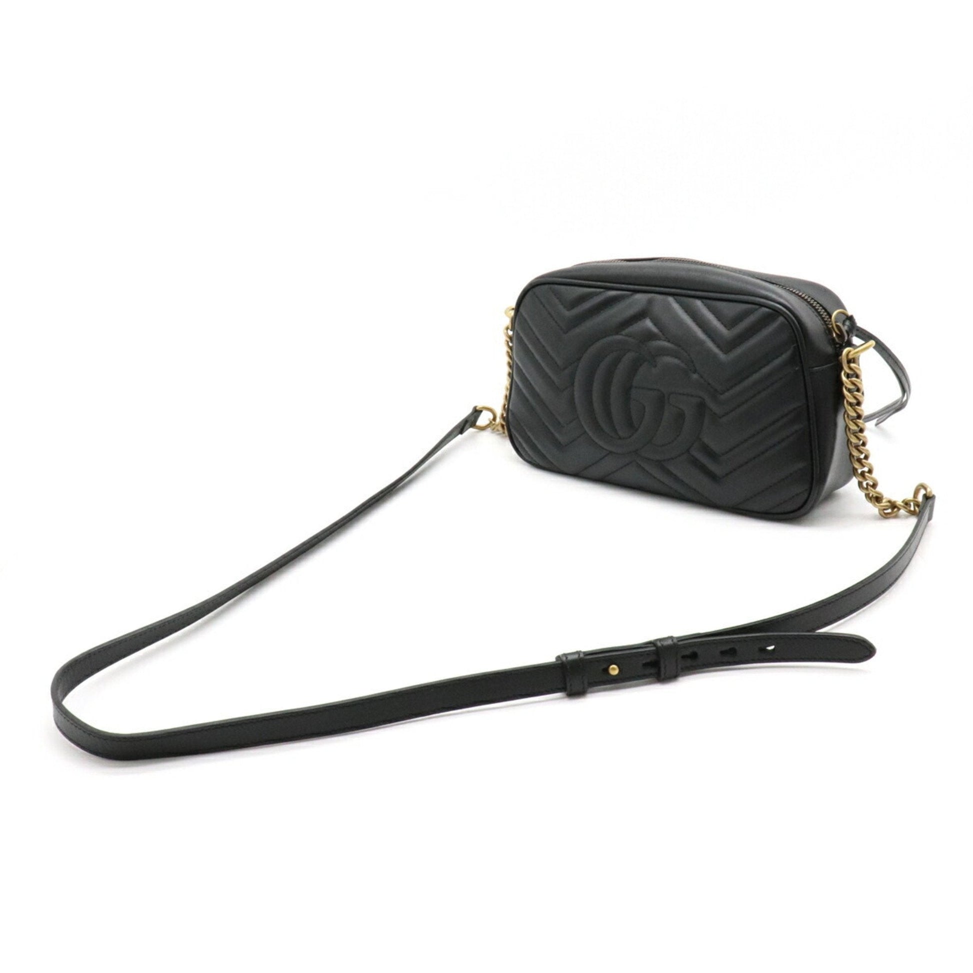 Gucci GG Marmont shoulder bag pochette chain quilted leather black 447632