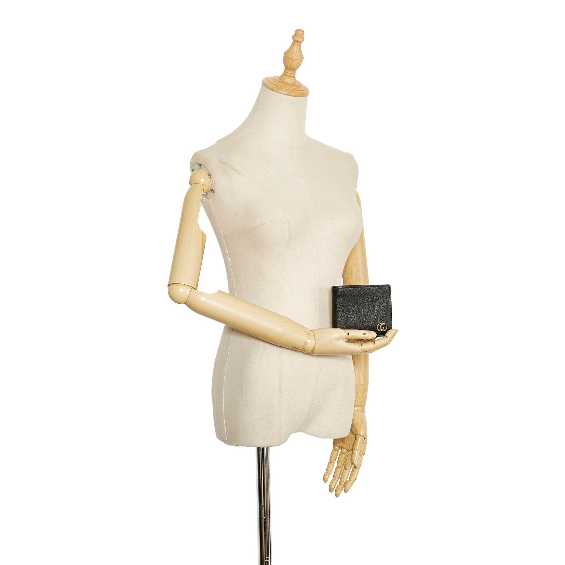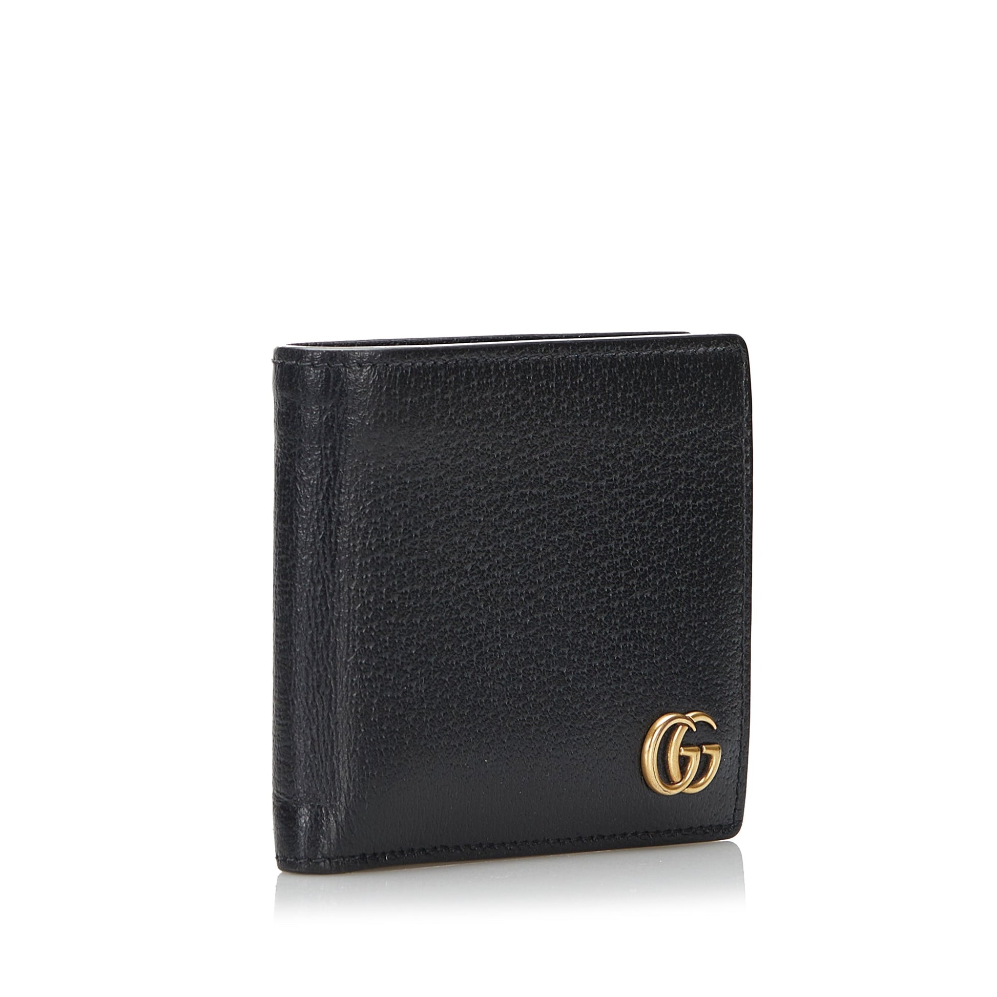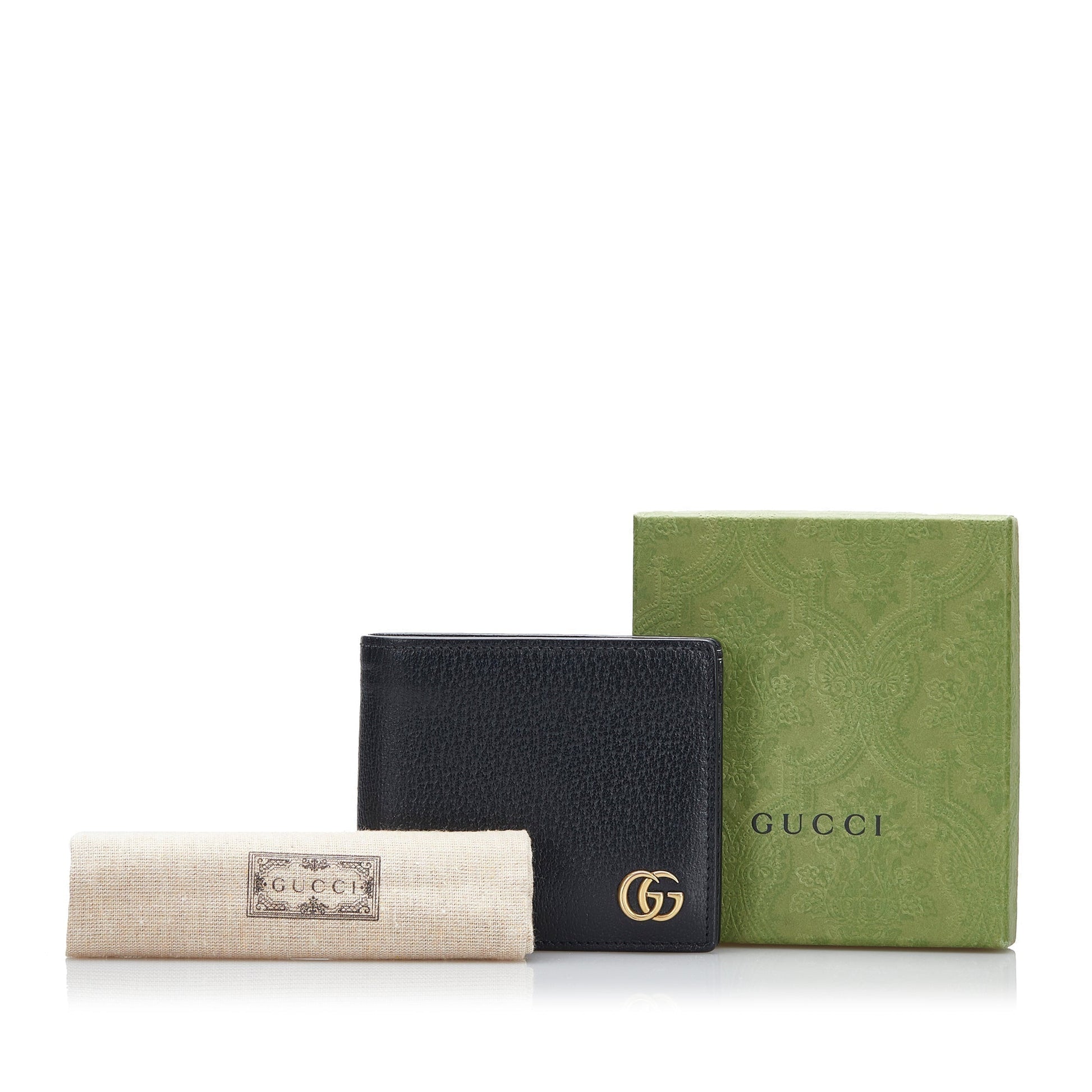 This wallet features a leather body, and interior slip and flap compartments. Comes with box and dust bag.