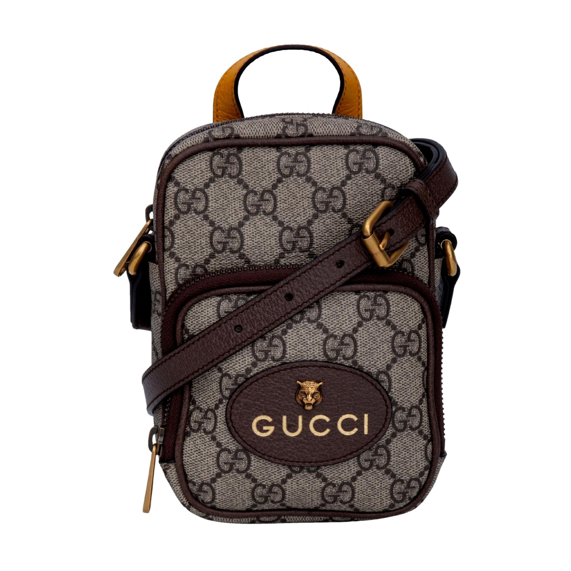 Gucci GG Monogram Tiger Beige Coated Canvas Mini Bag Crossbody