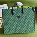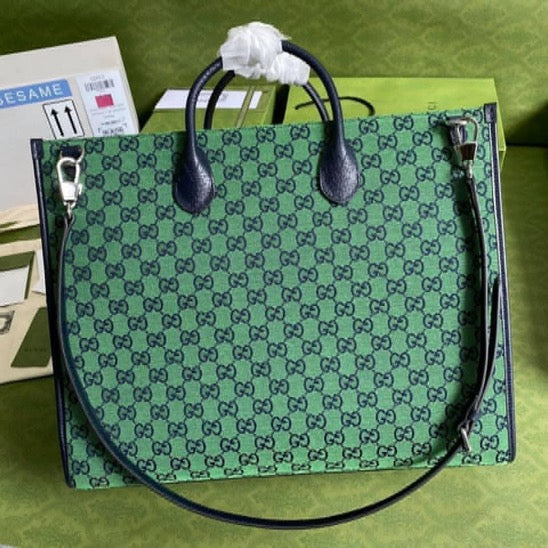 Embracing the new possibilities that lie within variations of the Gucci archives, various pieces throughout the collection provide a new lens through which to view the emblematic GG rhombi motif. Already an evolution of the House logo, it is once again reimagined in a series of bright colours�a theme that has become synonymous with the Creative Director�s vision. This large tote bag is part of the GG Multicolour collection.