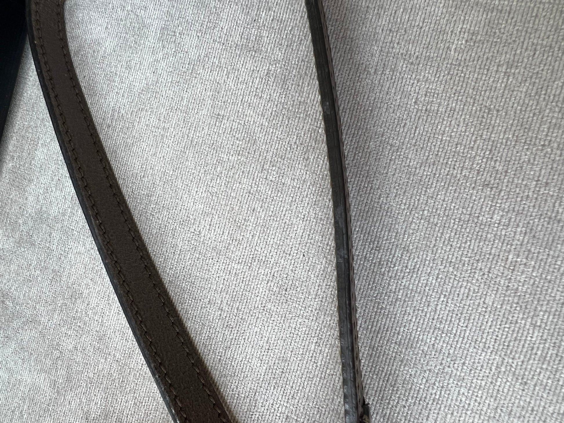 Exterior: Very good condition with small amount of general wear. Minor marks to strap, leather and canvas.