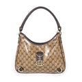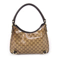 Details: Brown And Beige Patent GG Canvas / Gold-Tone Hardware / Brown Leather Trim / Single Rolled Handle / Interlocking GG Logo At Front Face / Patent Leather And Fabric At Interior / Single Zip Pocket / Zip Closure At Top