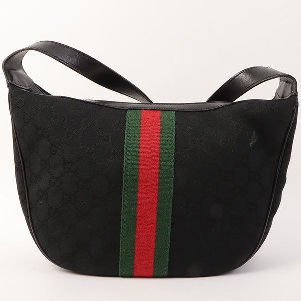 Gucci Gg Pattern Logo Plate Web Detailed Shoulder Bag Black